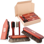 Zestaw szczotek z końskim włosiem do pielęgnacji obuwia.