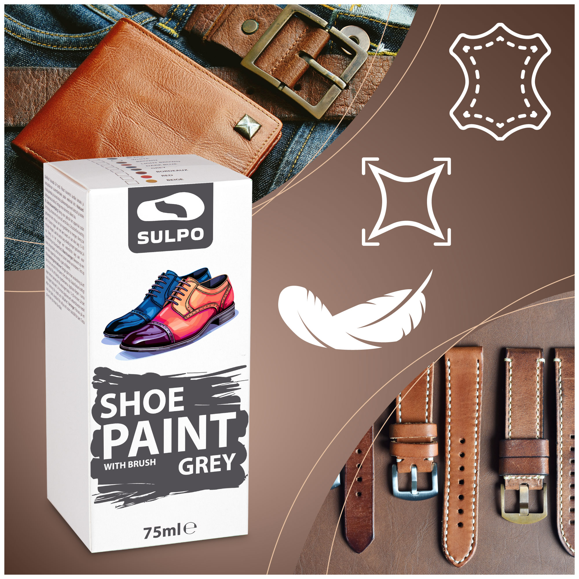 Przywróć życie swoim ulubionym butom, torebkom, kurtkom czy fotelom! SULPO Shoe Paint to wysokiej jakości farba stworzona specjalnie do odnawiania i barwienia skóry naturalnej oraz syntetycznej. Dzięki niej w prosty sposób odświeżysz wygląd zużytych przedmiotów lub nadasz im zupełnie nowy charakter!