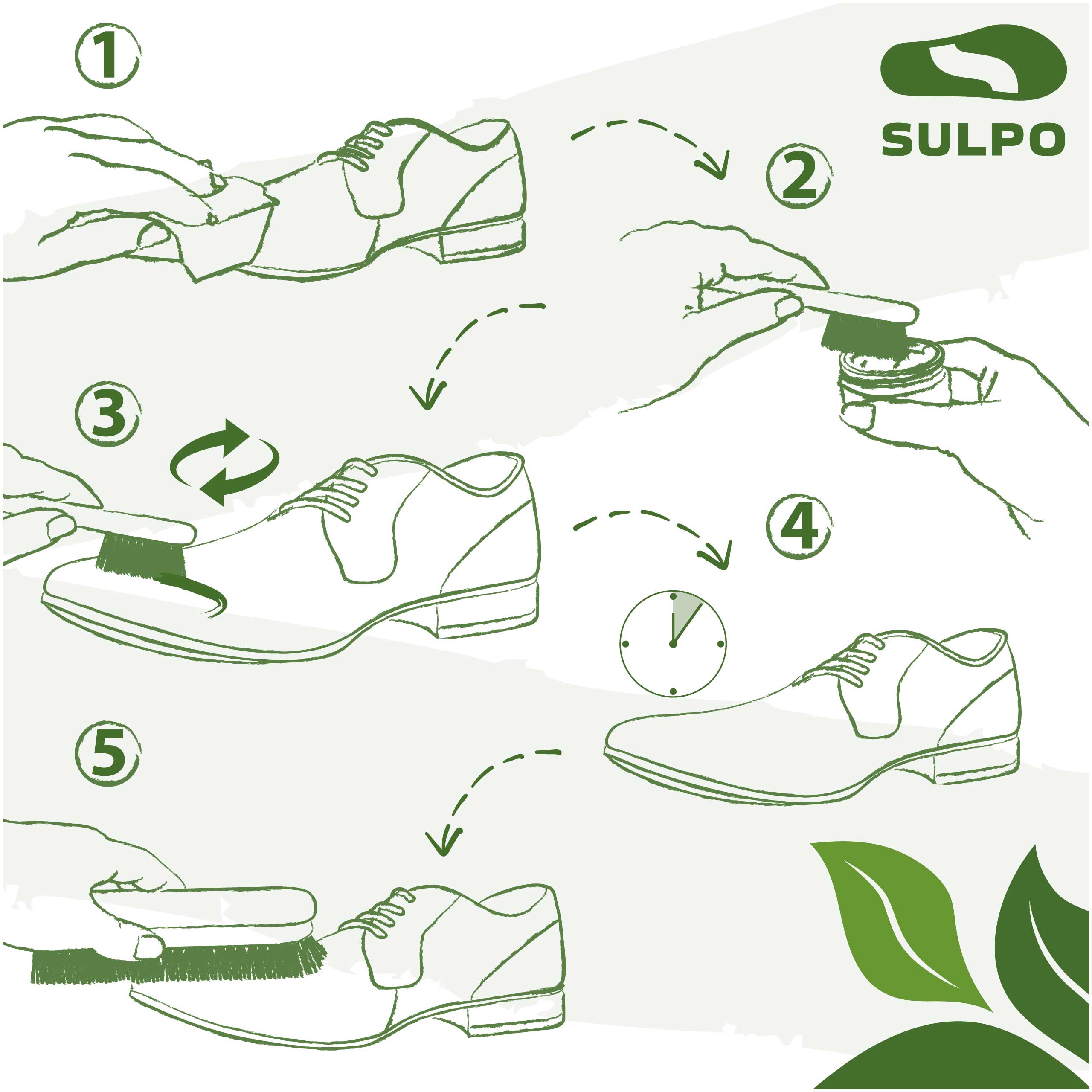 - Kolistymi ruchami równomiernie rozprowadź produkt na obuwie.