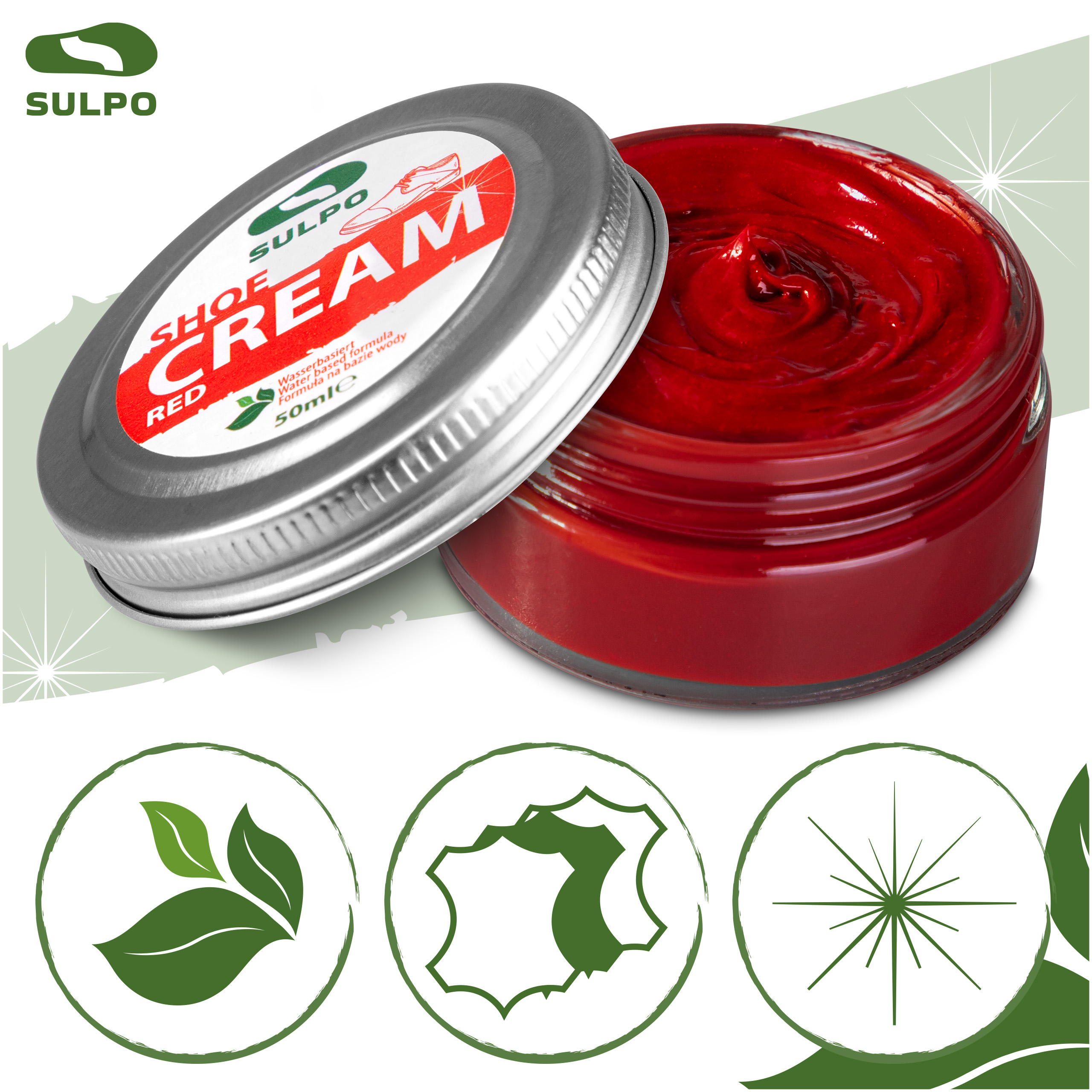 Pasta do butów 50 ml krem do skóry obuwia czerwony odświeżenie koloru Sulpo