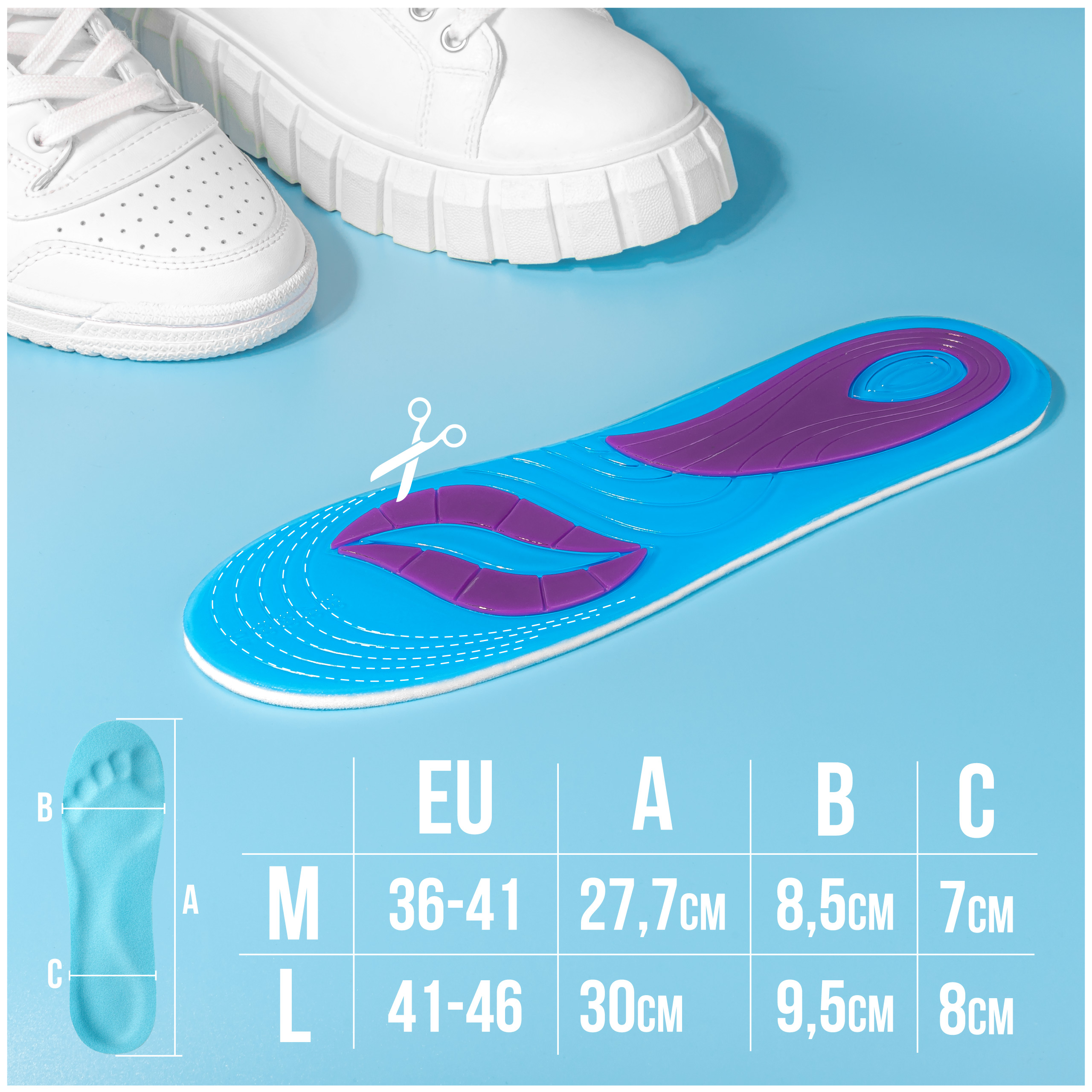 Wkładki dostępne są w dwóch rozmiarach, które można przyciąć do idealnego kształtu, dzięki czemu pasują do różnych rodzajów butów. To praktyczne rozwiązanie, które pozwala na precyzyjne dopasowanie do stopy i obuwia. Wystarczy dopasować wkładkę do swojego rozmiaru i przyciąć wzdłuż zaznaczonych linii, aby cieszyć się idealnym komfortem.