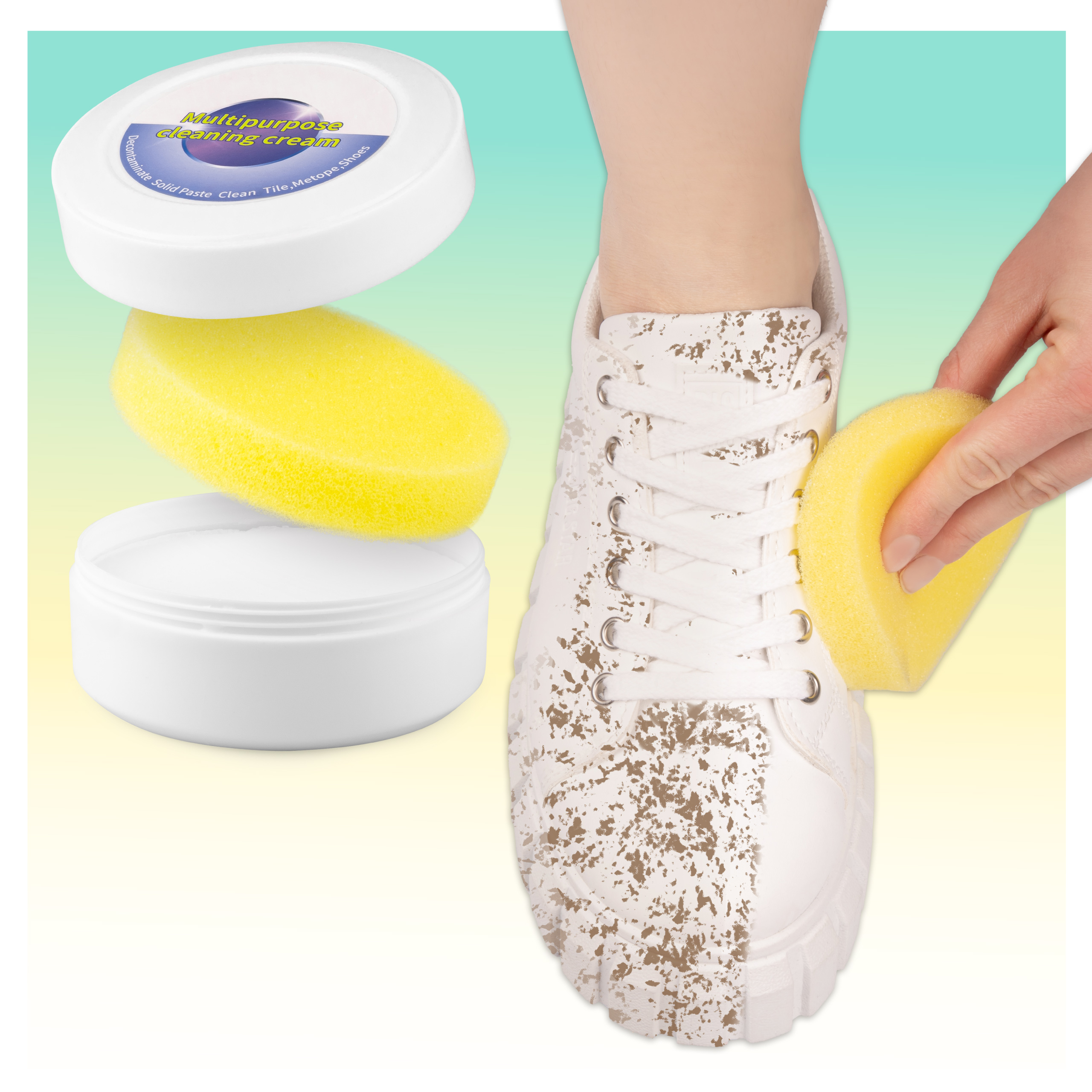 Białe buty łatwo ulegają zabrudzeniom, ale dzięki temu kremowi czyszczącemu szybko odzyskają świeży wygląd. Skutecznie usuwa kurz, błoto i plamy, sprawiając, że obuwie wygląda jak nowe – bez konieczności prania czy użycia wody.