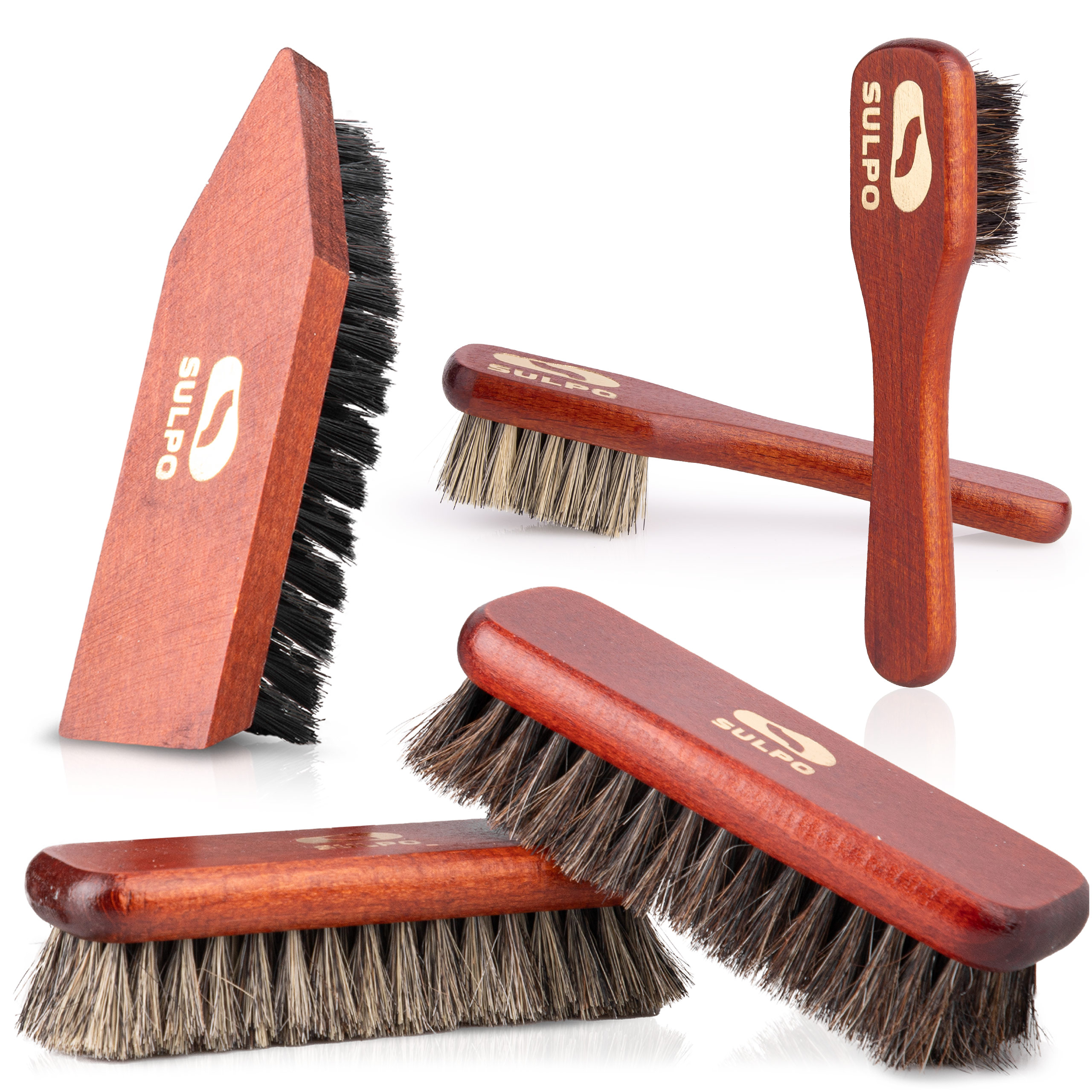 Zestaw szczotek z końskim włosiem do pielęgnacji obuwia.