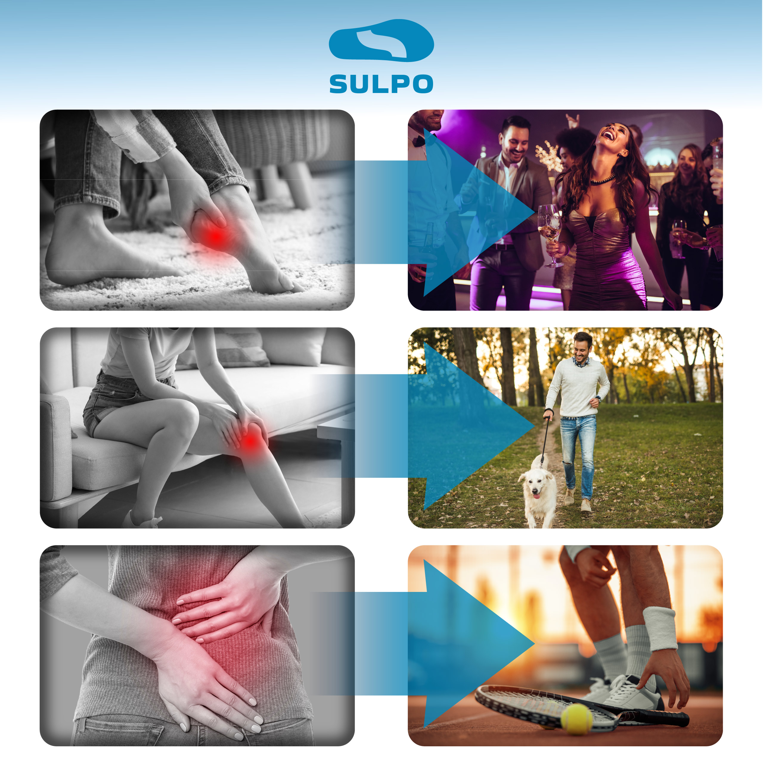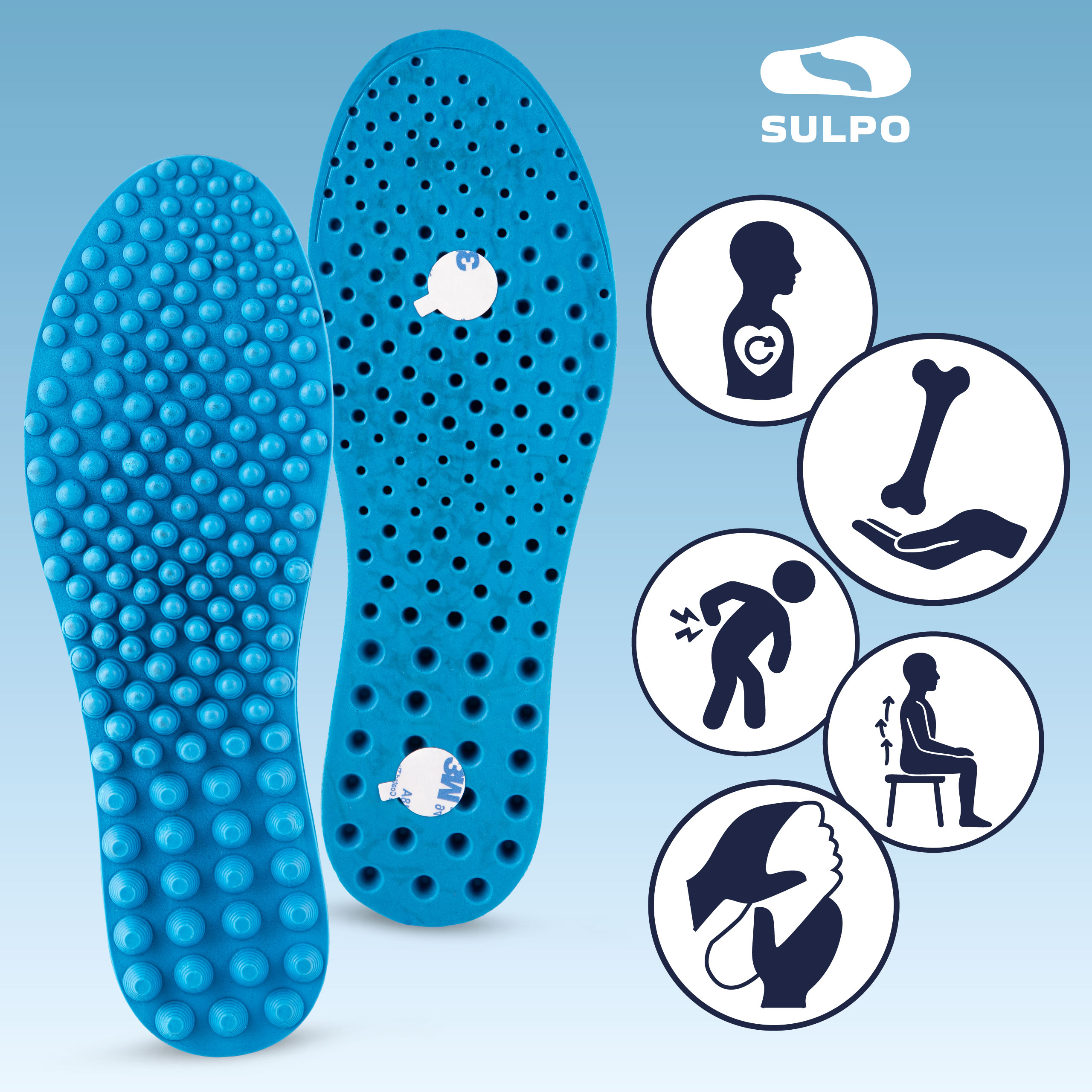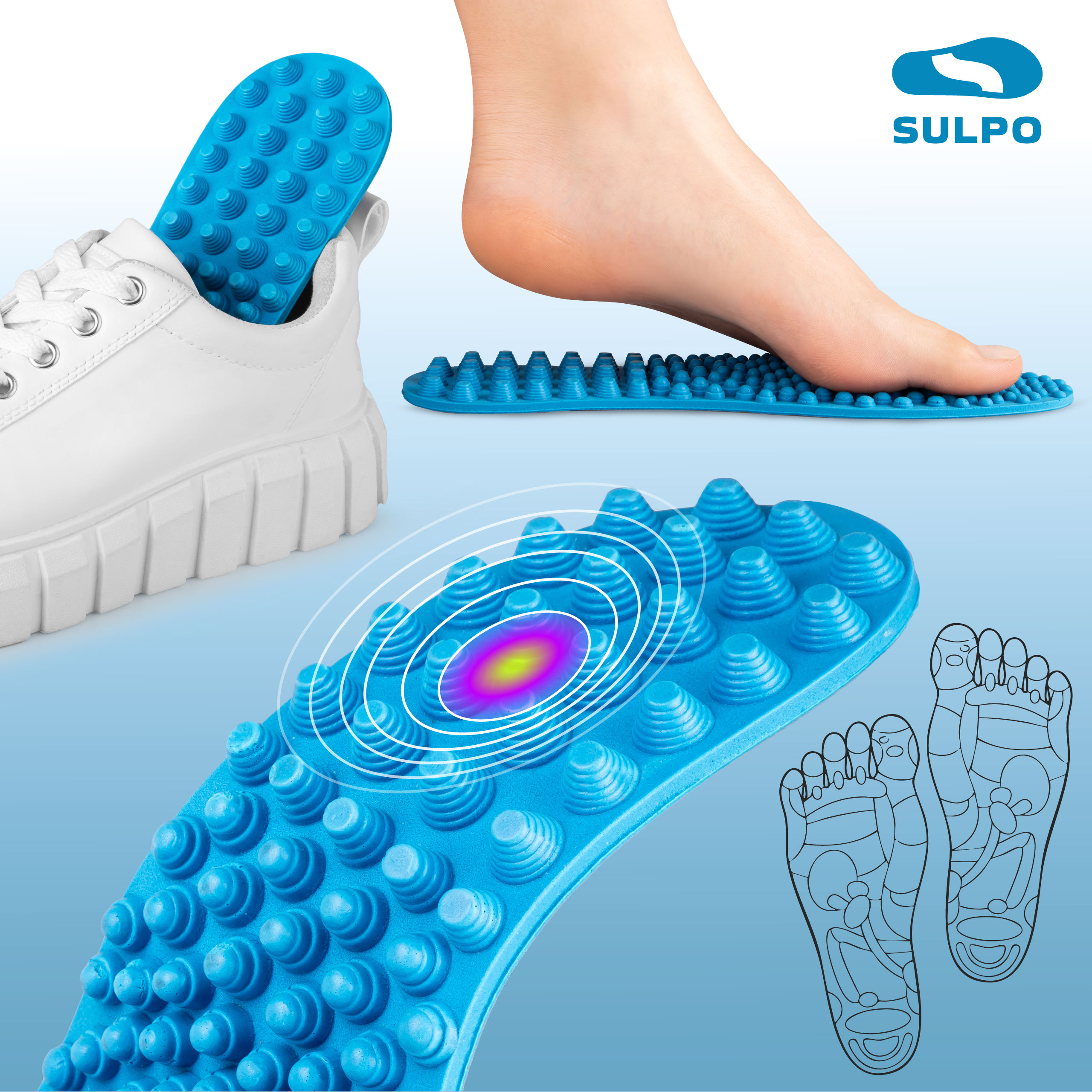 Wkładki SULPO wspierają całe ciało, zapewniając komfort, masaż i regenerację stóp.