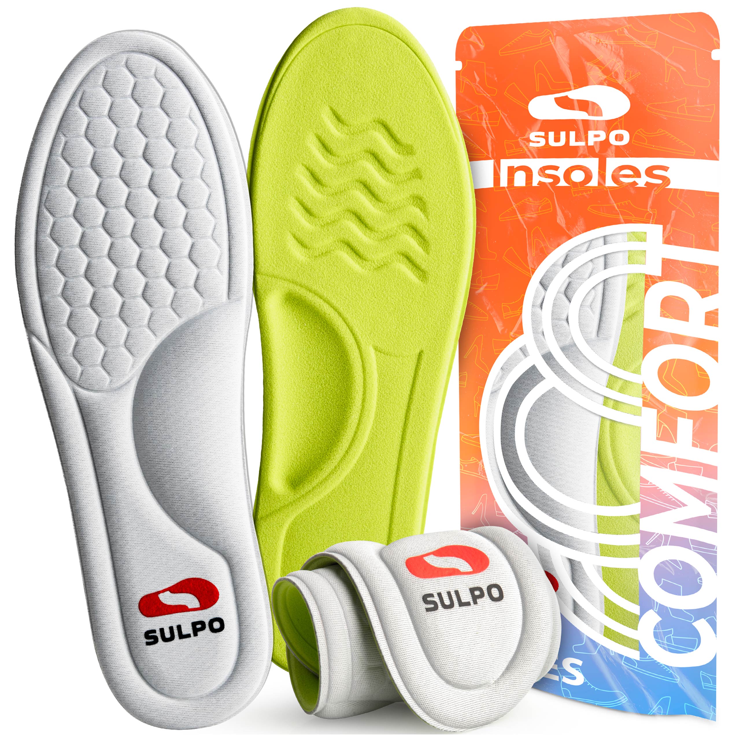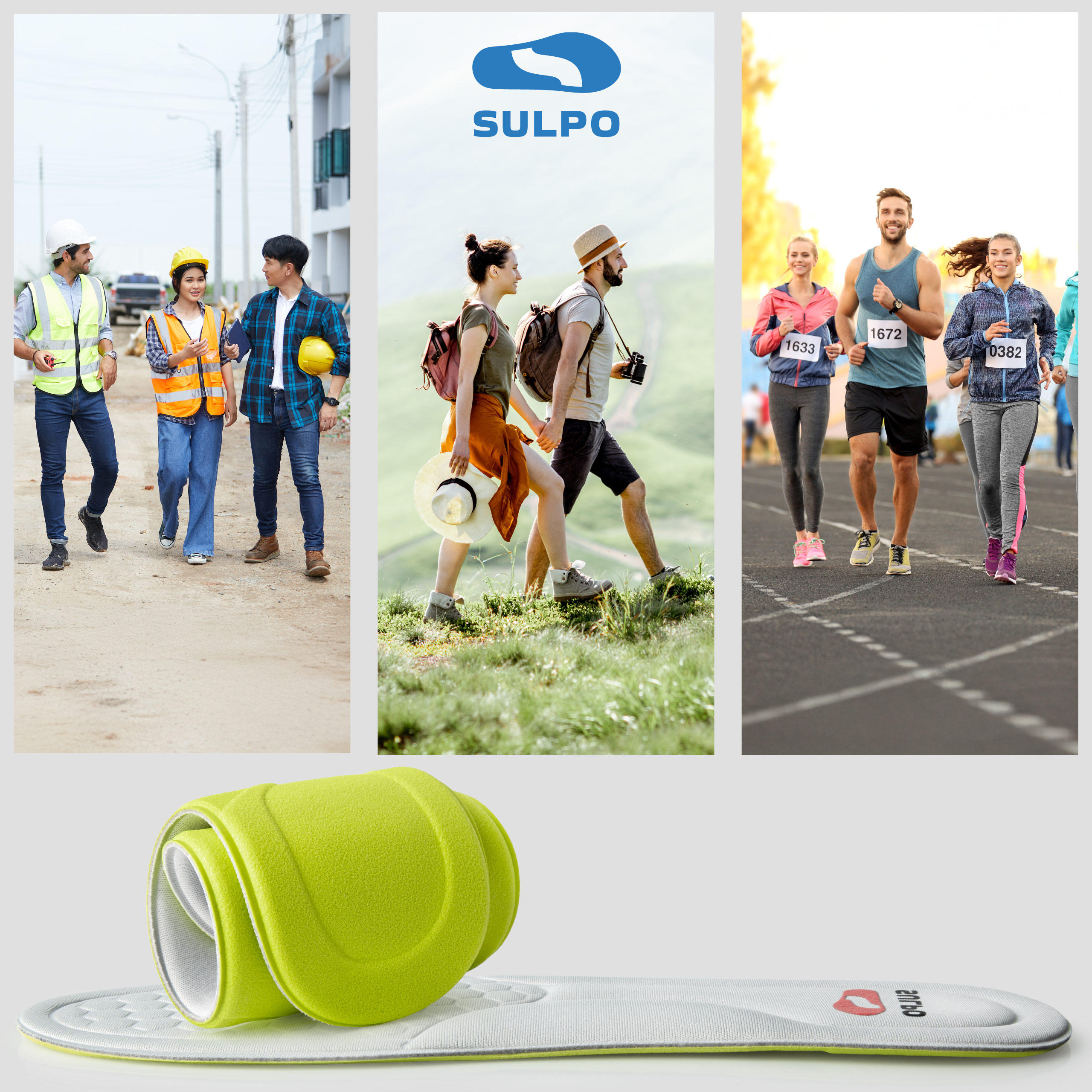 Dzięki anatomicznemu kształtowi wkładki dopasowują się zarówno do stopy, jak i wnętrza obuwia, wspierając jej naturalne ułożenie. Wydzielone specjalne strefy z wypukłym wzorem zapewniają delikatną amortyzację, chroniąc stawy i pięty. Niezależnie od tego, czy jesteś w ruchu, czy długo stoisz – wkładki SULPO zapewnią Ci miękkie i stabilne podparcie.
