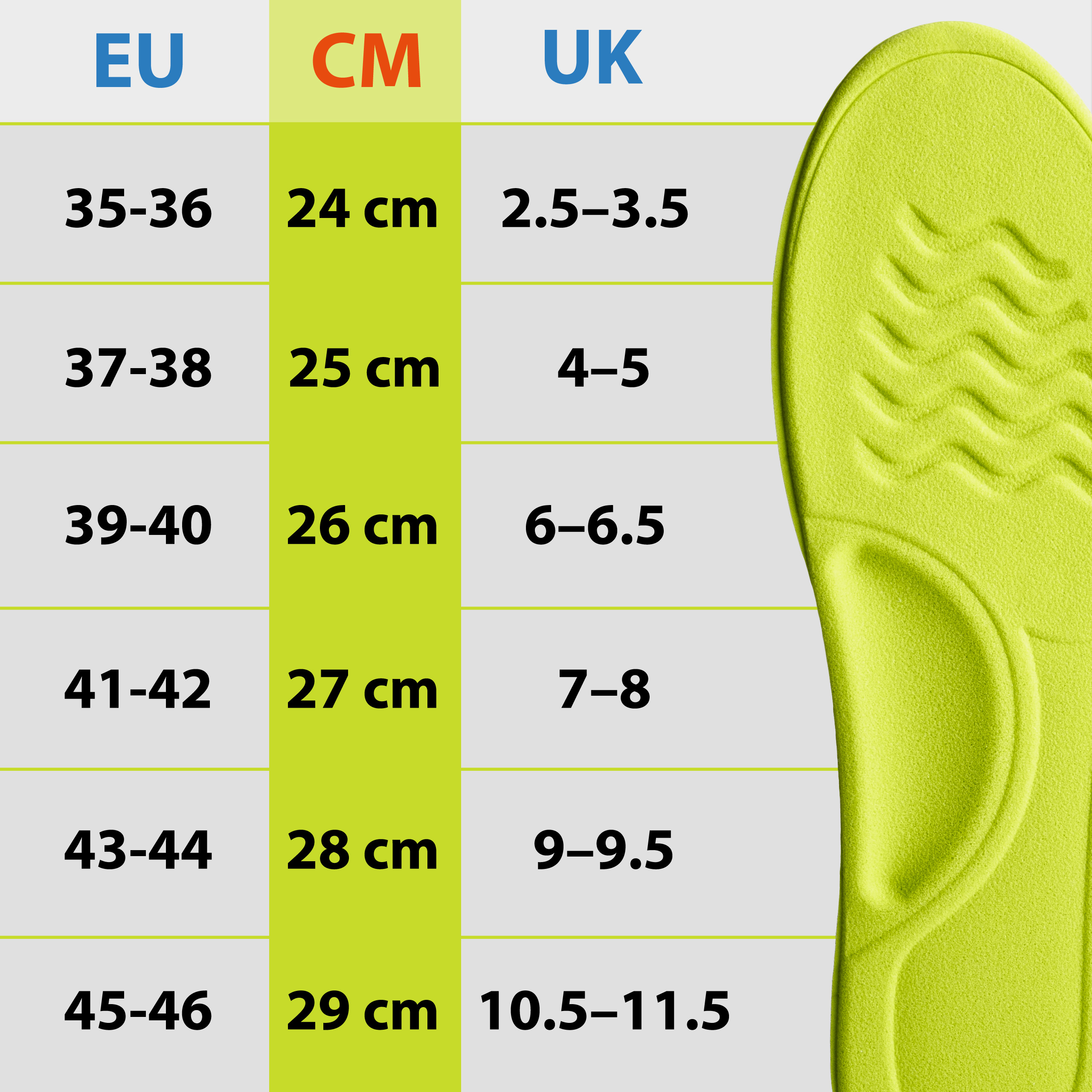 Cienka konstrukcja (5 mm) pozwala na użycie wkładek zarówno w sportowych butach, jak i w półbutach, trampkach czy butach roboczych. Jedna para – wiele możliwości.