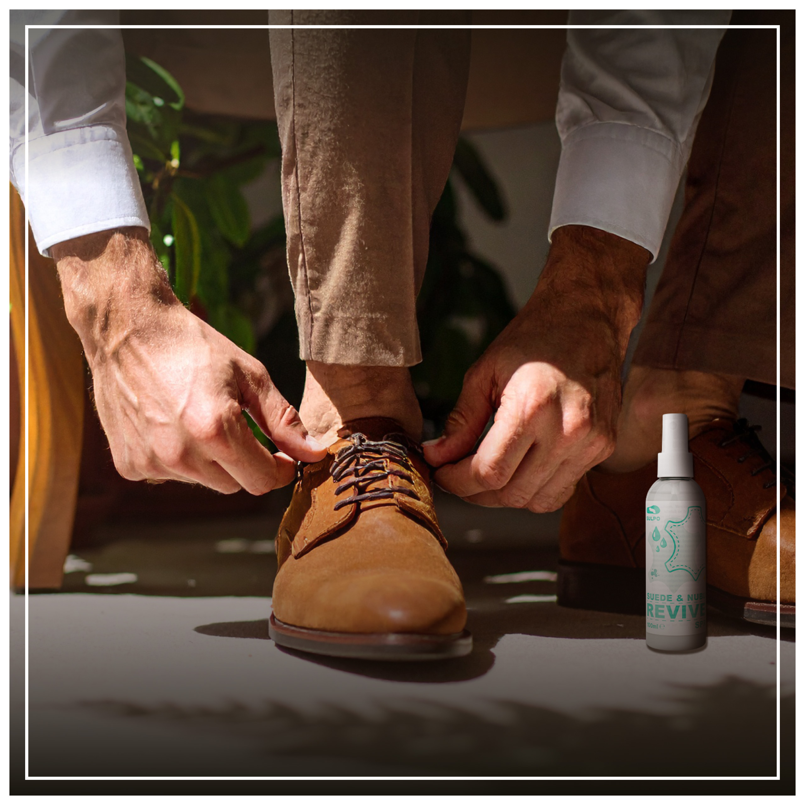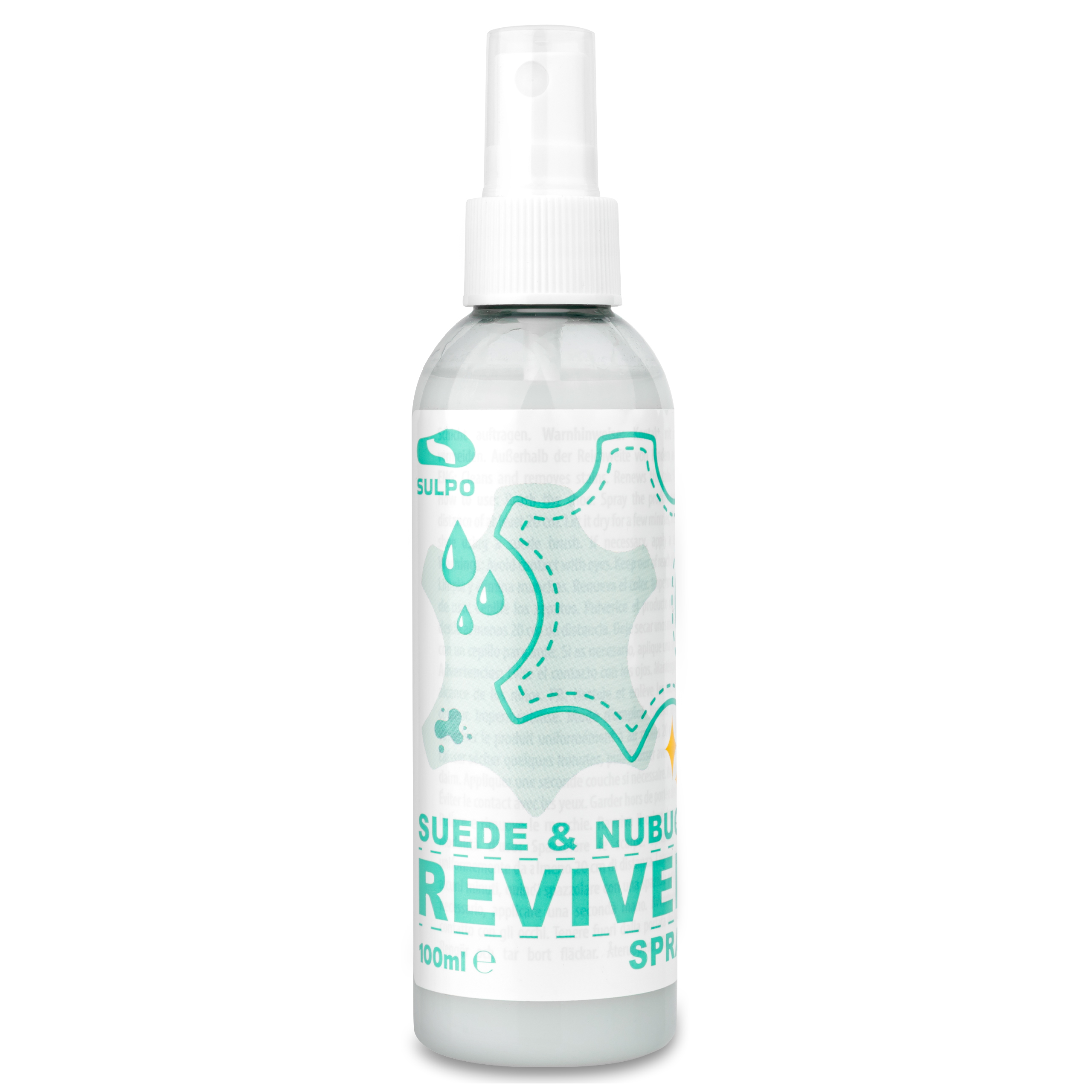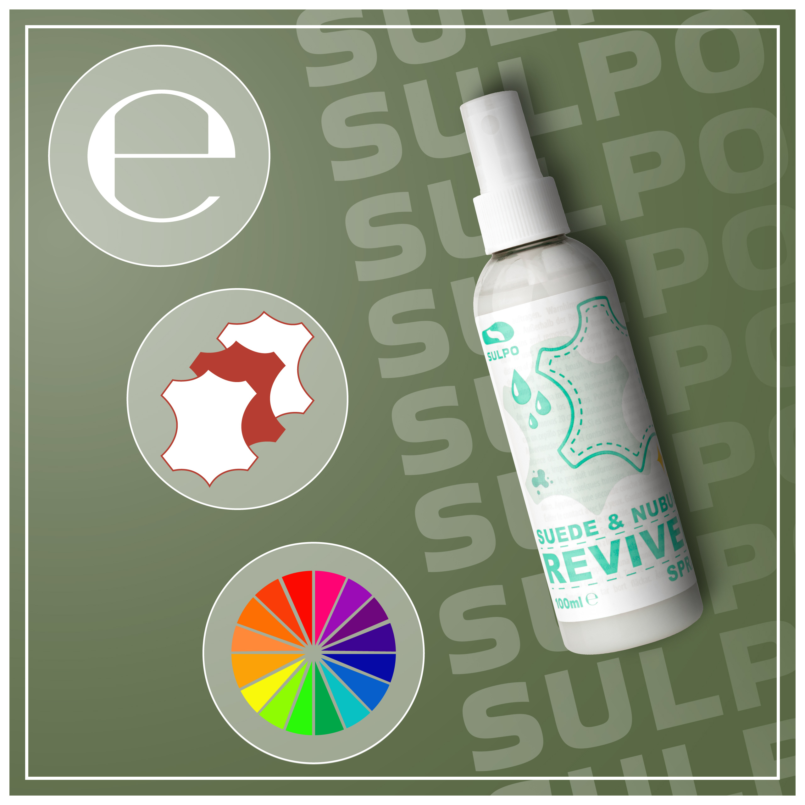 - SULPO Suede & Nubuk REVIVE to bezbarwny, łatwy w użyciu płyn do pielęgnacji zamszu i nubuku, który odświeża kolor, czyści lekkie zabrudzenia i przedłuża trwałość delikatnej skóry.