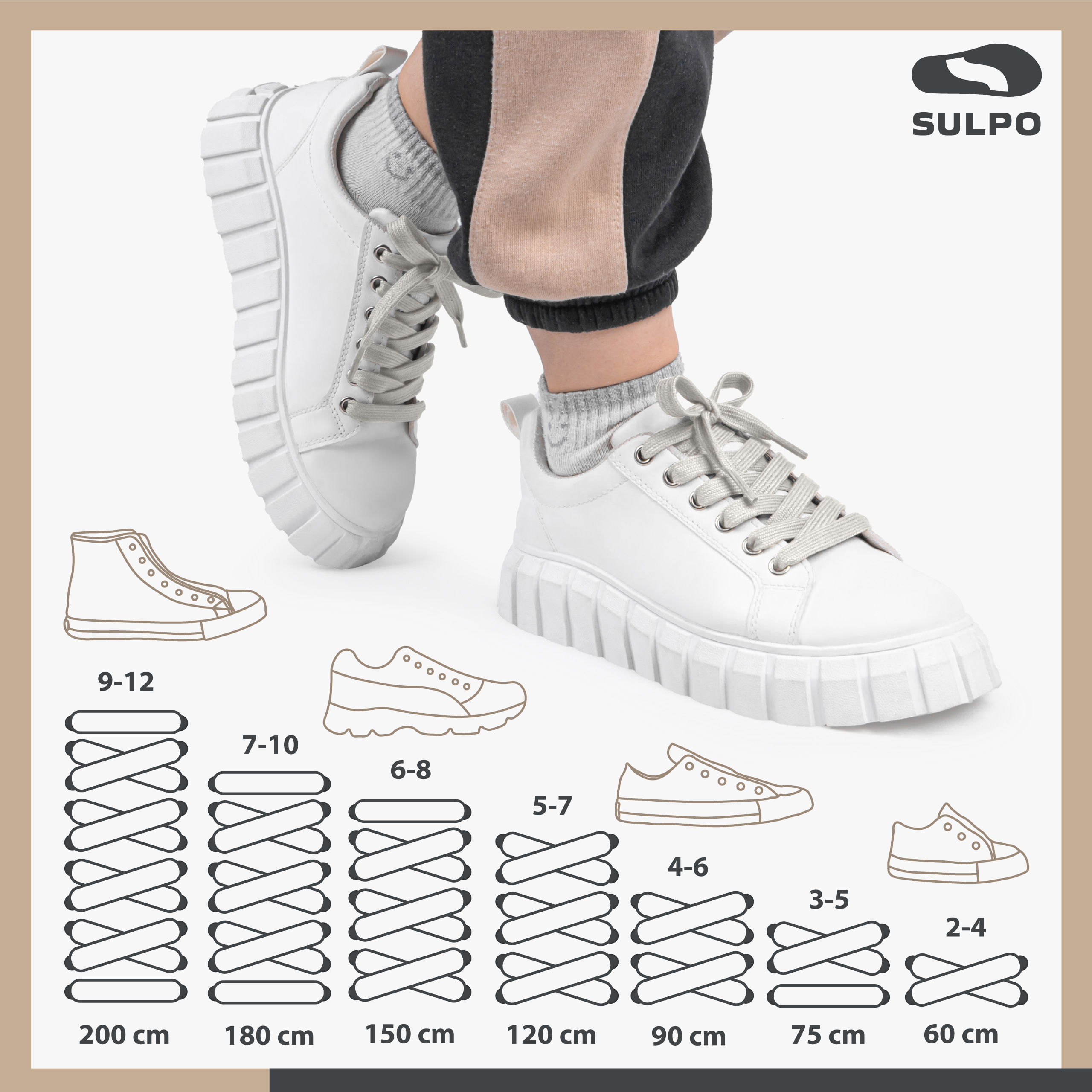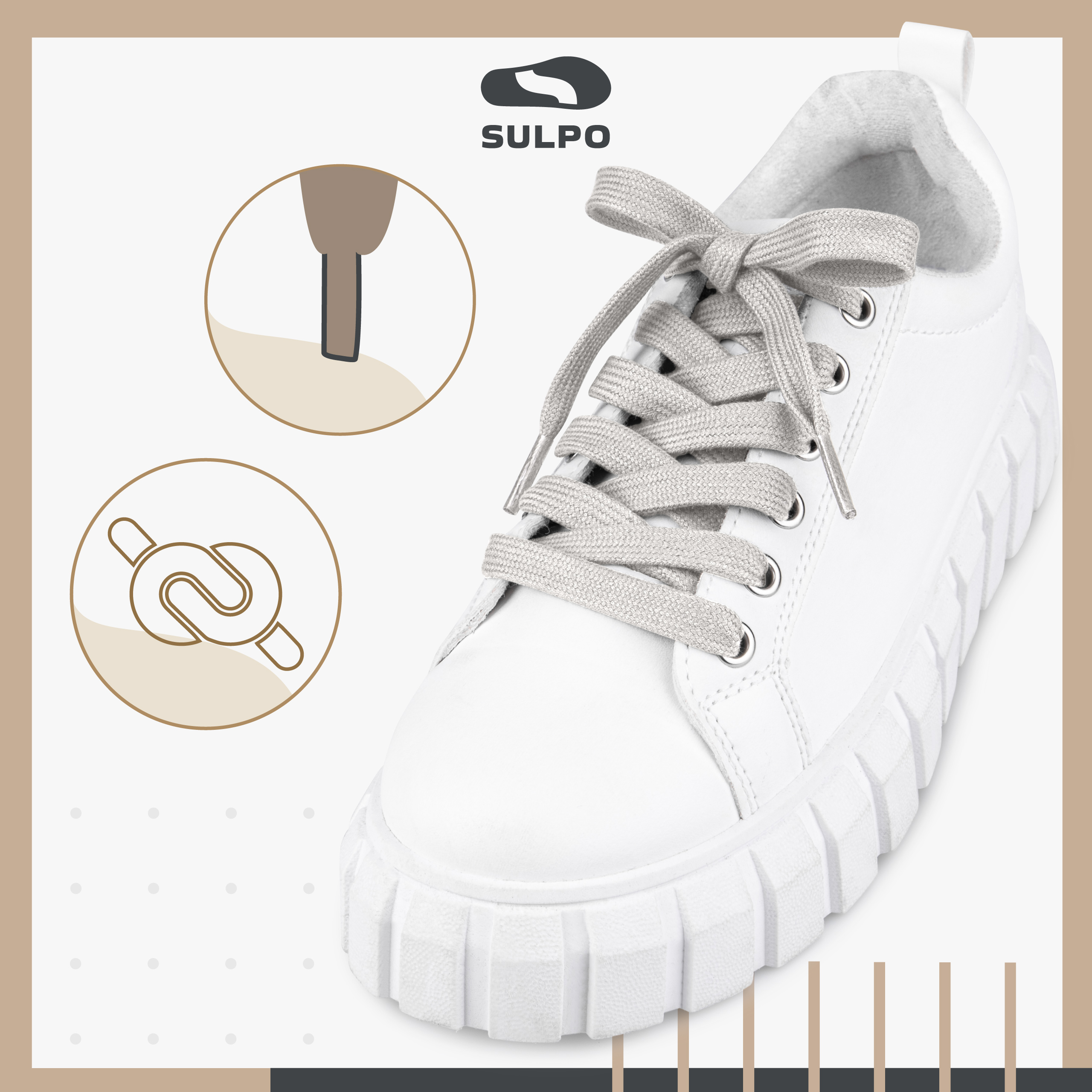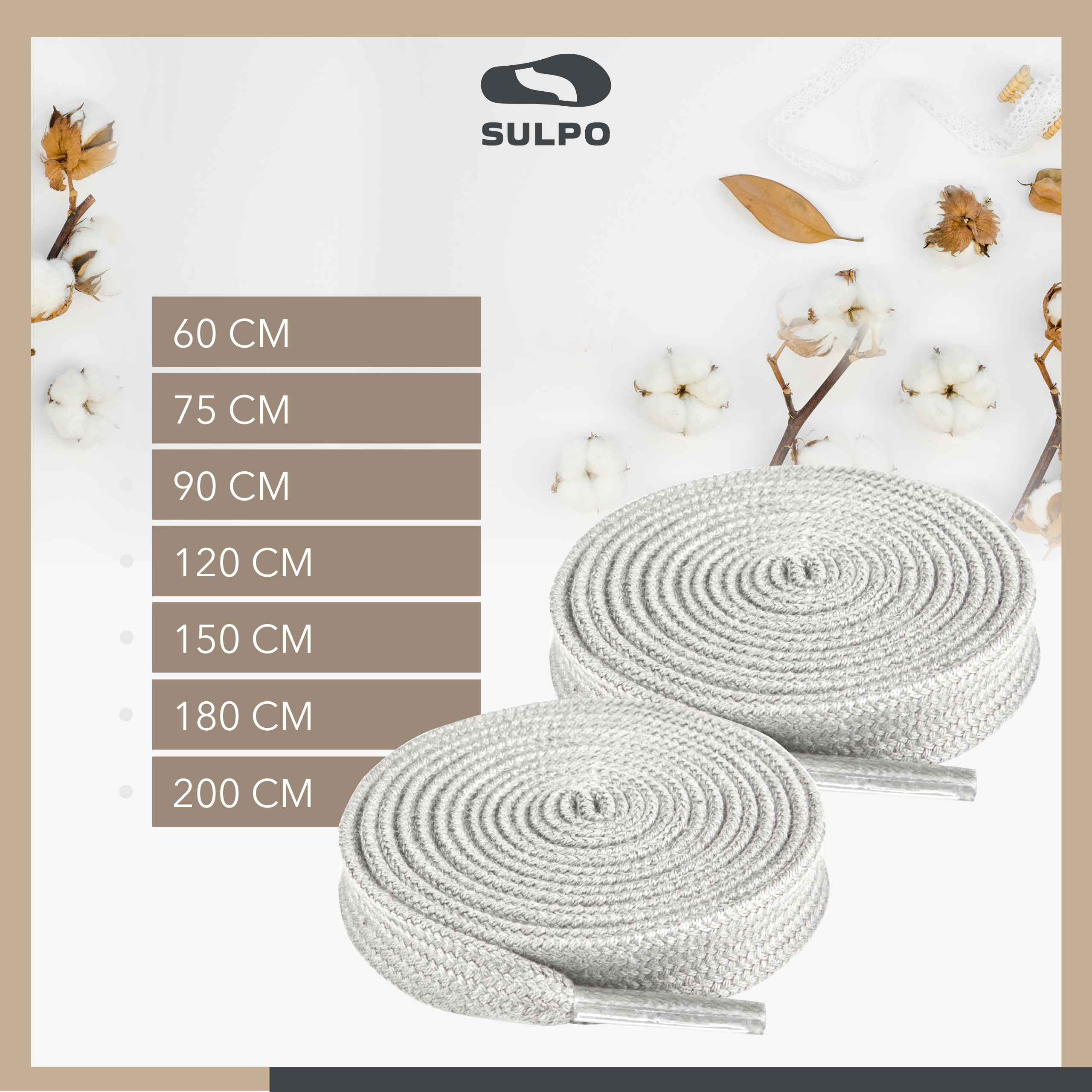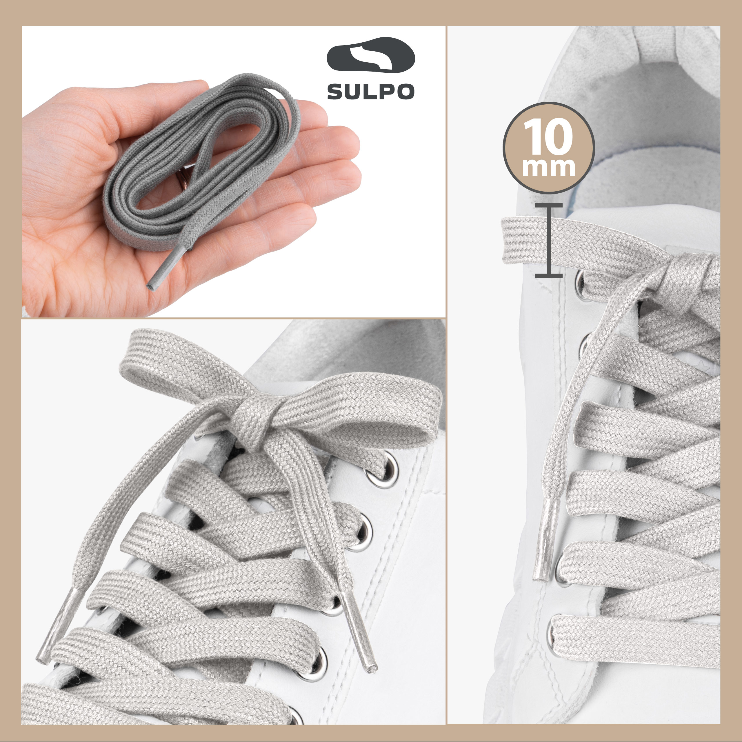 SULPO Sznurówki bawełniane, płaskie, do obuwia sportowego, kolor jasnobeżowy
