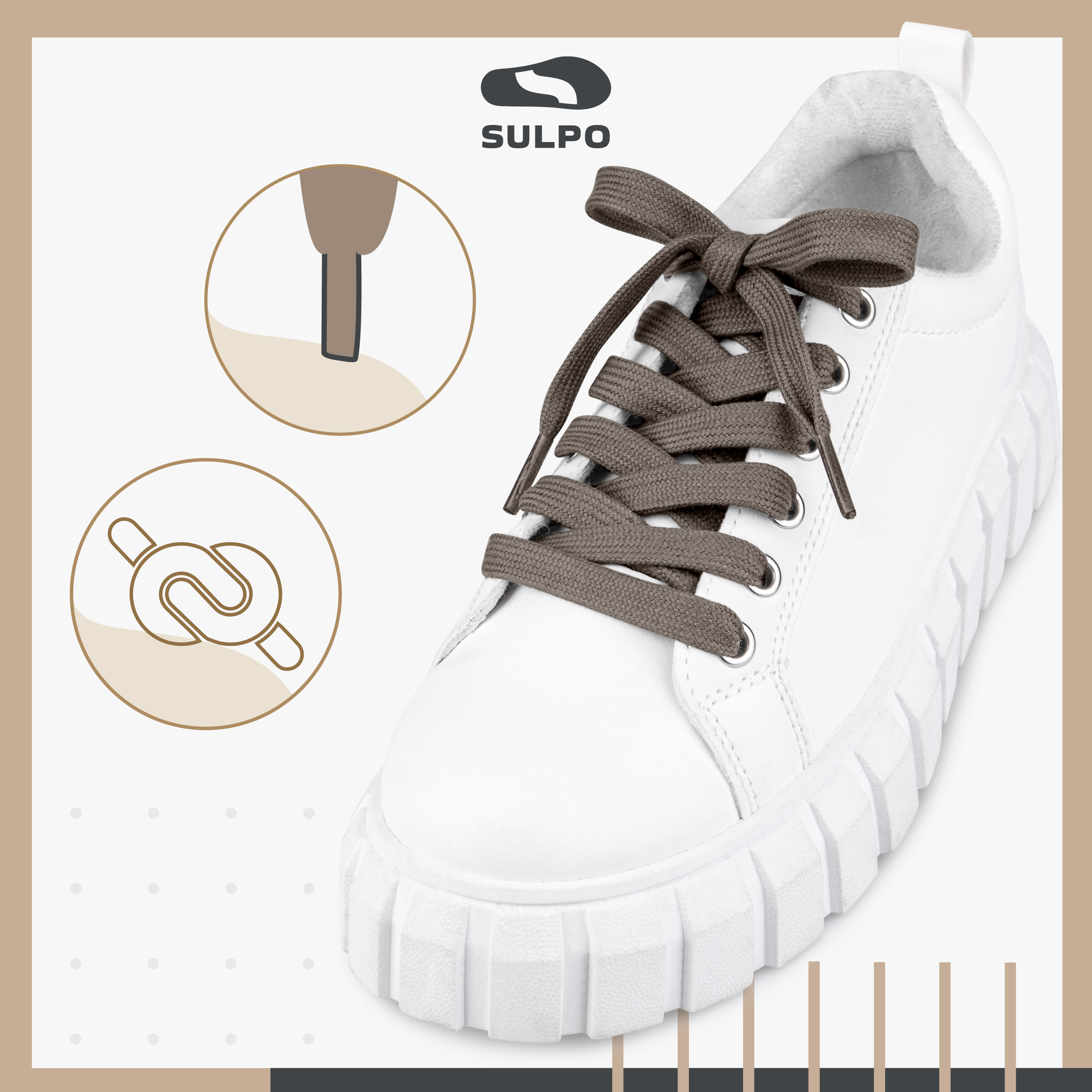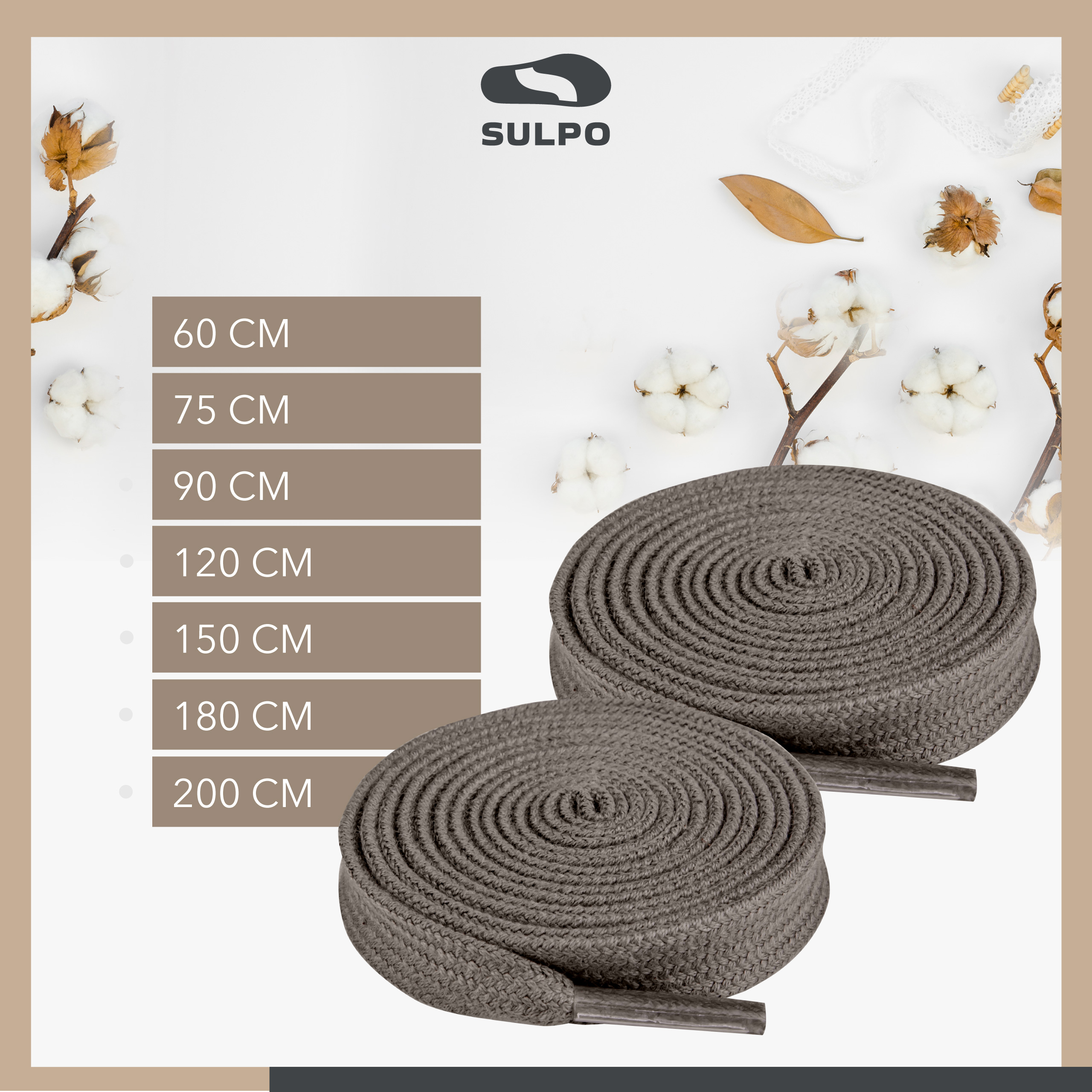 SULPO Sznurówki bawełniane, płaskie, do obuwia sportowego, kolor ciemnoszary