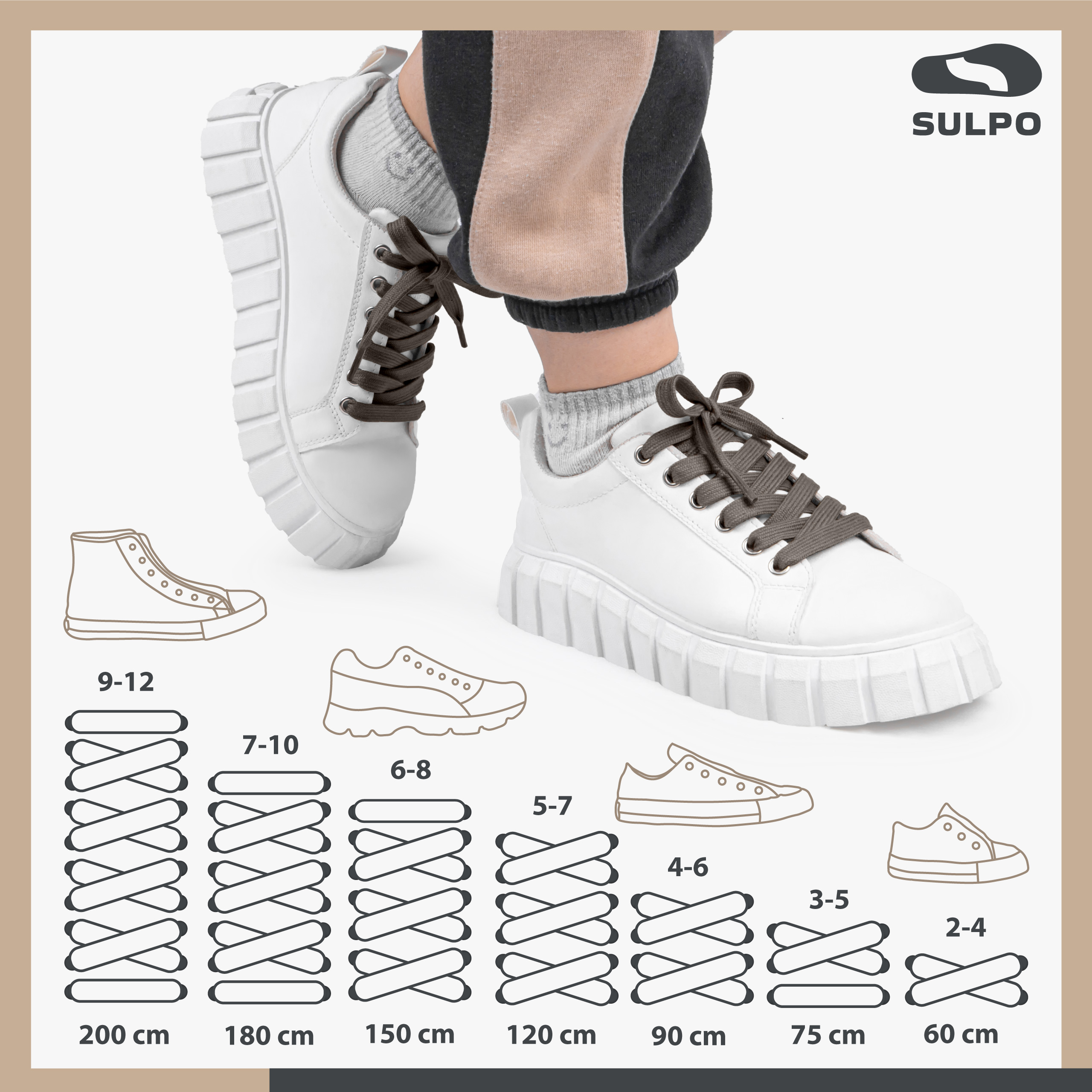 Im więcej dziurek w bucie, tym dłuższe sznurowadła będą potrzebne. W ofercie dostępne są wszystkie najczęściej wybierane długości – wystarczy sprawdzić, ile oczek ma Twoje obuwie.