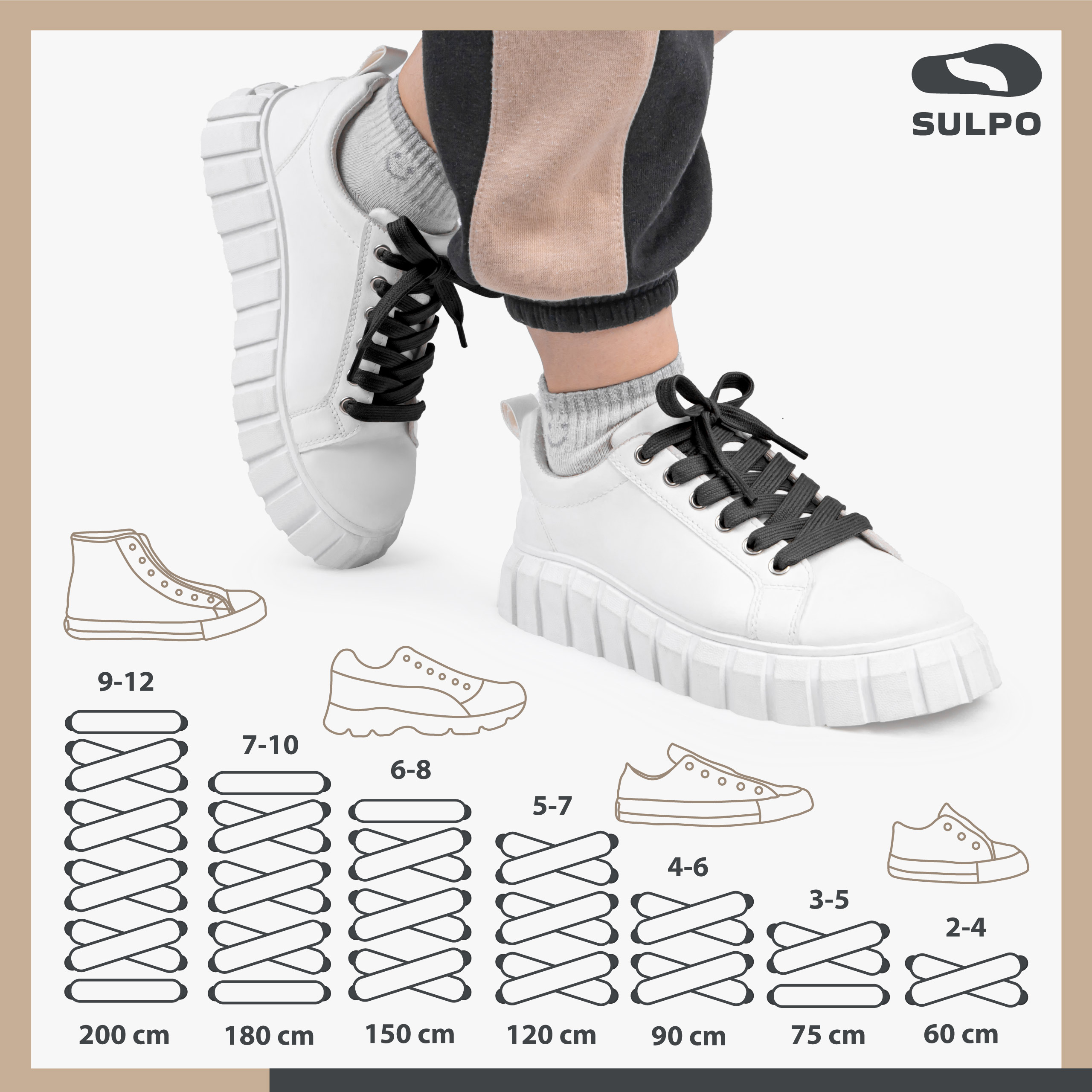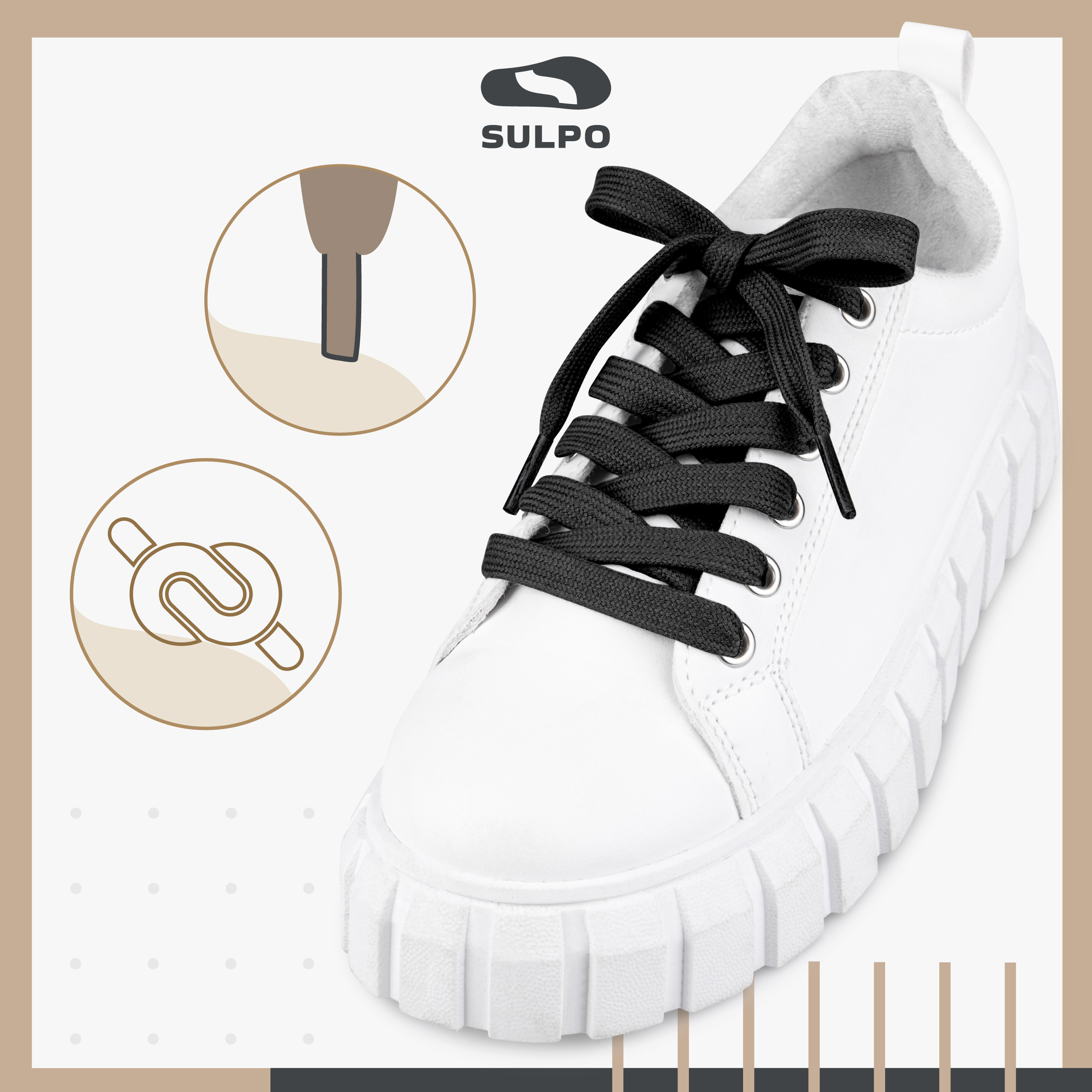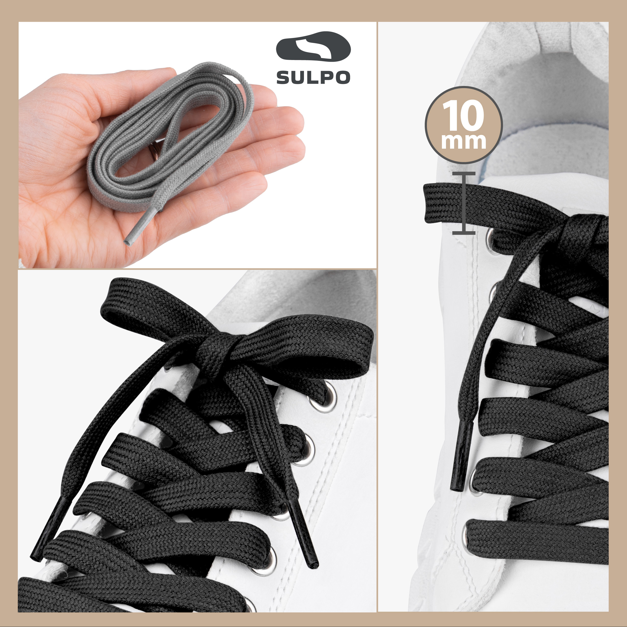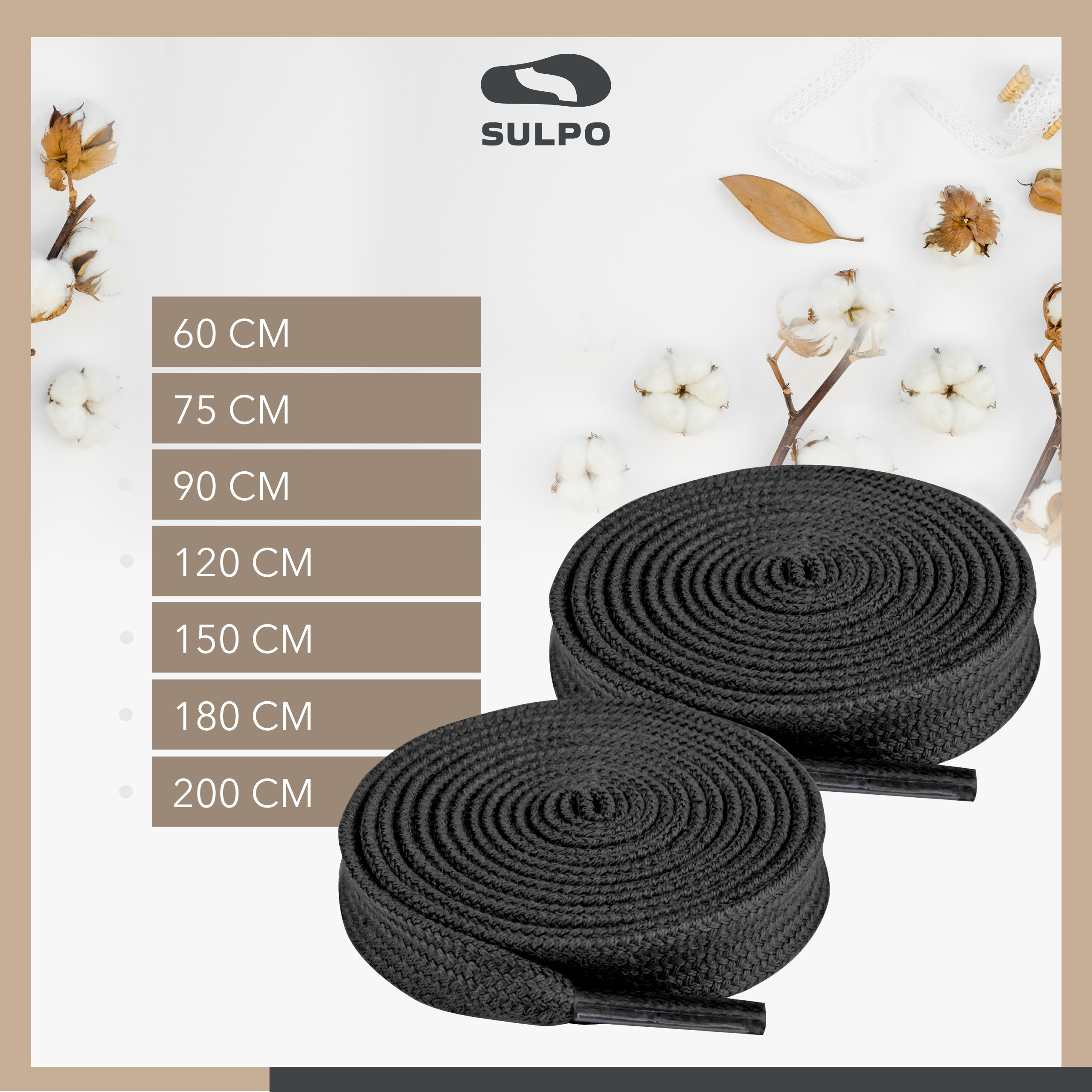 SULPO Sznurówki bawełniane, płaskie, do obuwia sportowego, kolor czarny
