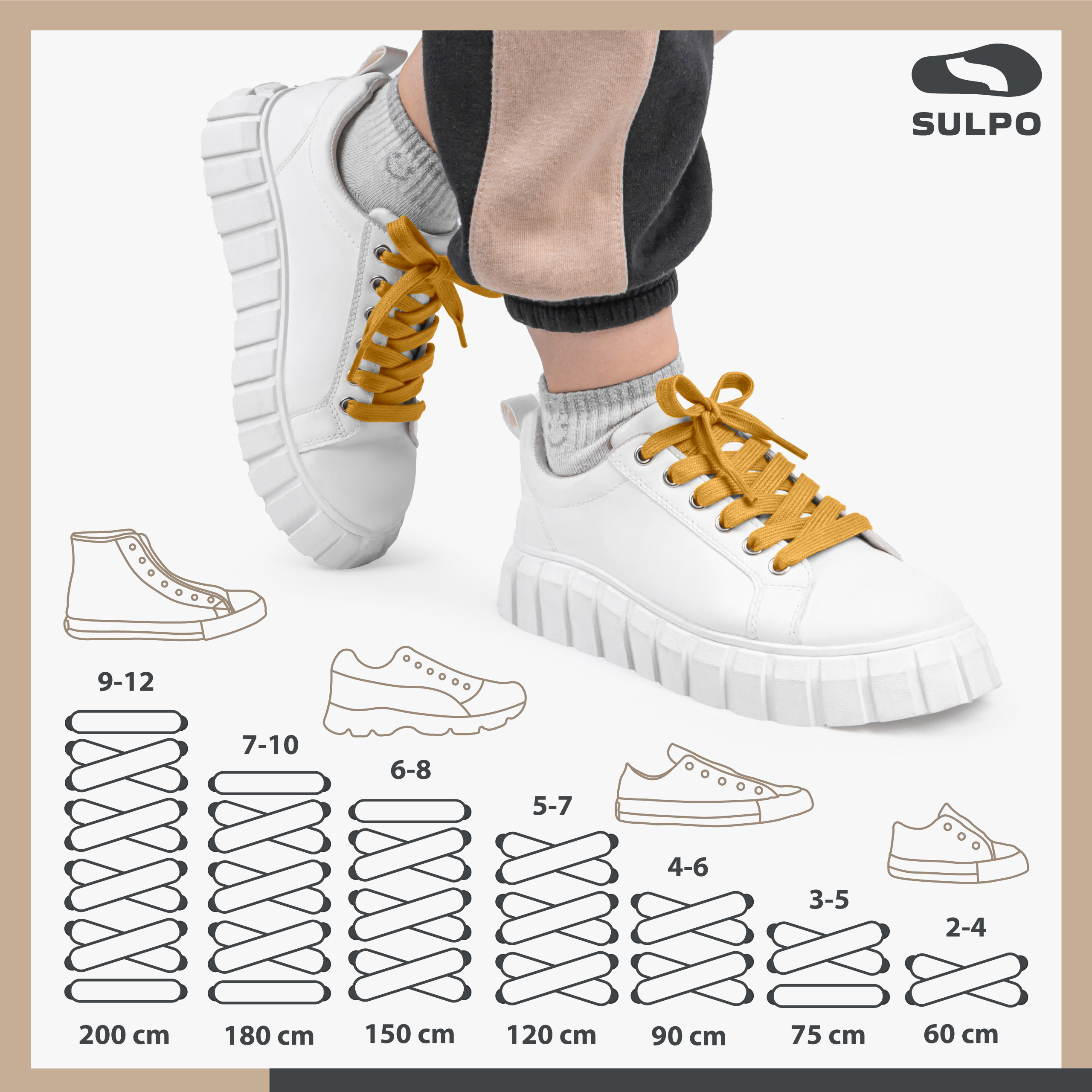 SULPO Sznurówki bawełniane, płaskie, do obuwia sportowego, kolor żółty