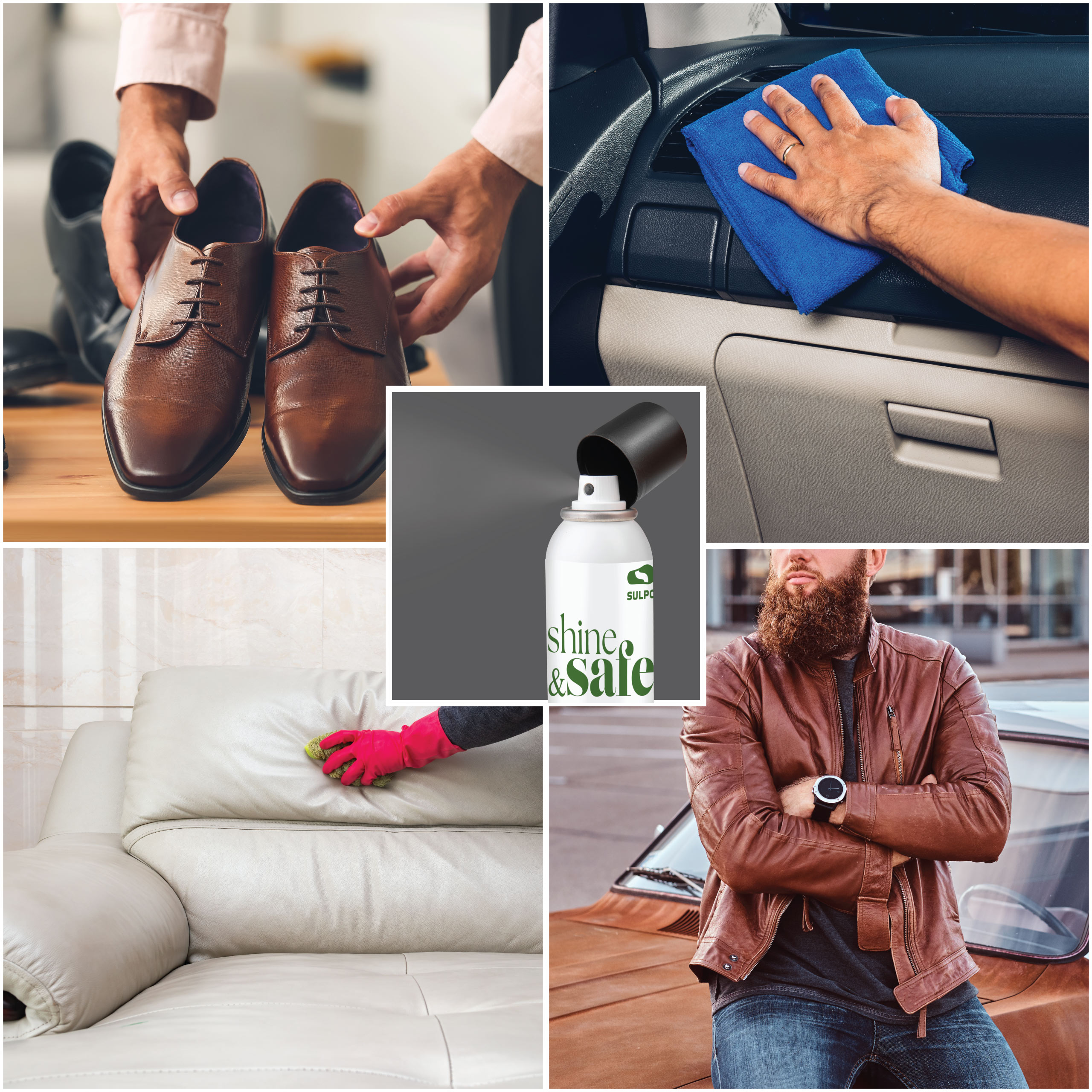 Niezależnie, czy pielęgnujesz skórzaną sofę, kurtkę, buty czy tapicerkę samochodową – SULPO Shine&Safe zapewnia długotrwałe nawilżenie, blask i ochronę przed pękaniem. Wystarczy kilka psiknięć, by skóra wyglądała jak nowa!