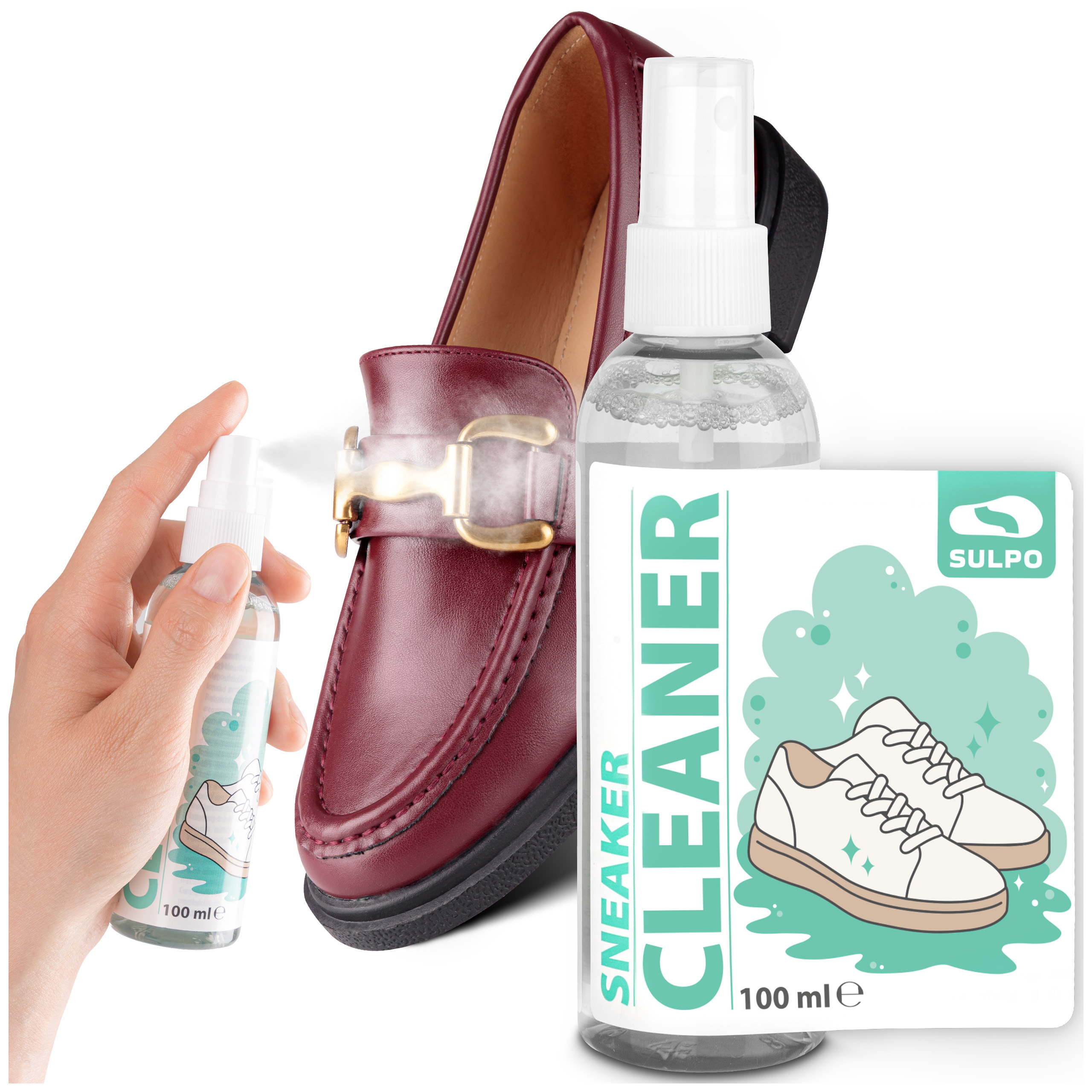 - SULPO Sneaker Cleaner – wodny płyn do czyszczenia obuwia w atomizerze 100 ml. Skutecznie usuwa zabrudzenia i odświeża wygląd butów sportowych i codziennych, bezpieczny dla różnych materiałów.
