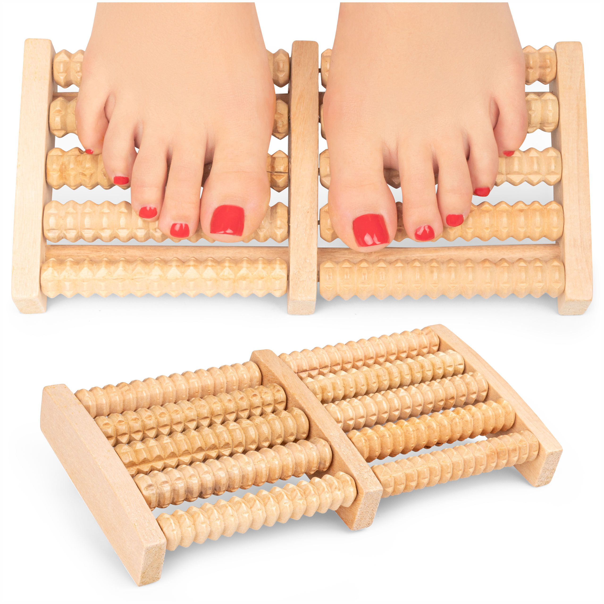 - Drewniany masażer do stóp – podwójny roller z obrotowymi rolkami, zapewniający relaks i ulgę zmęczonym stopom.