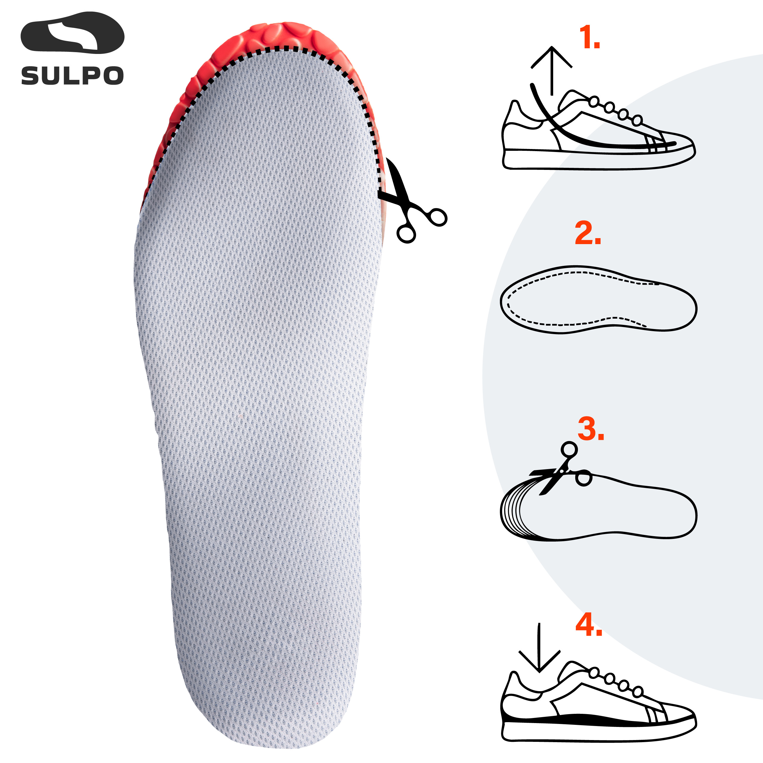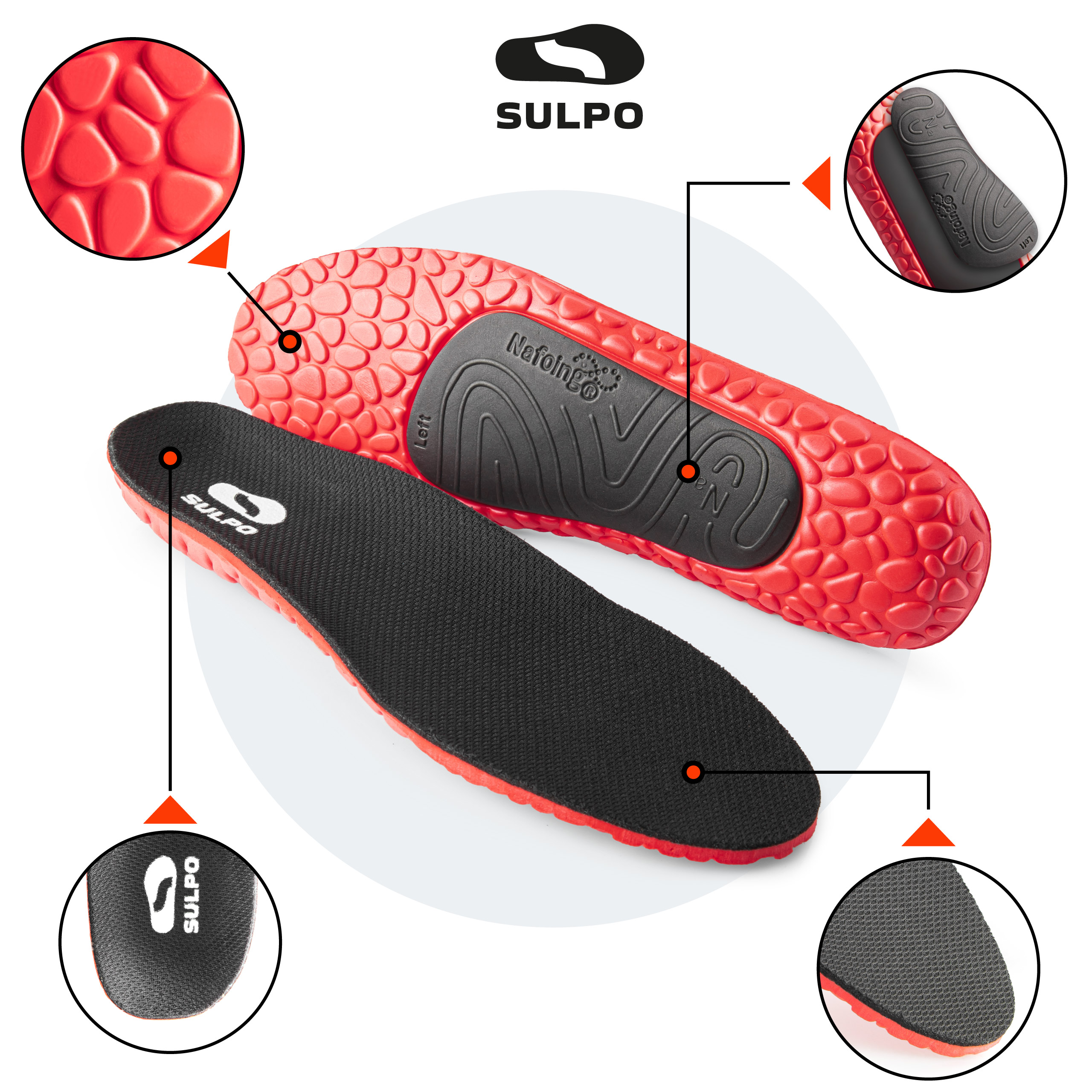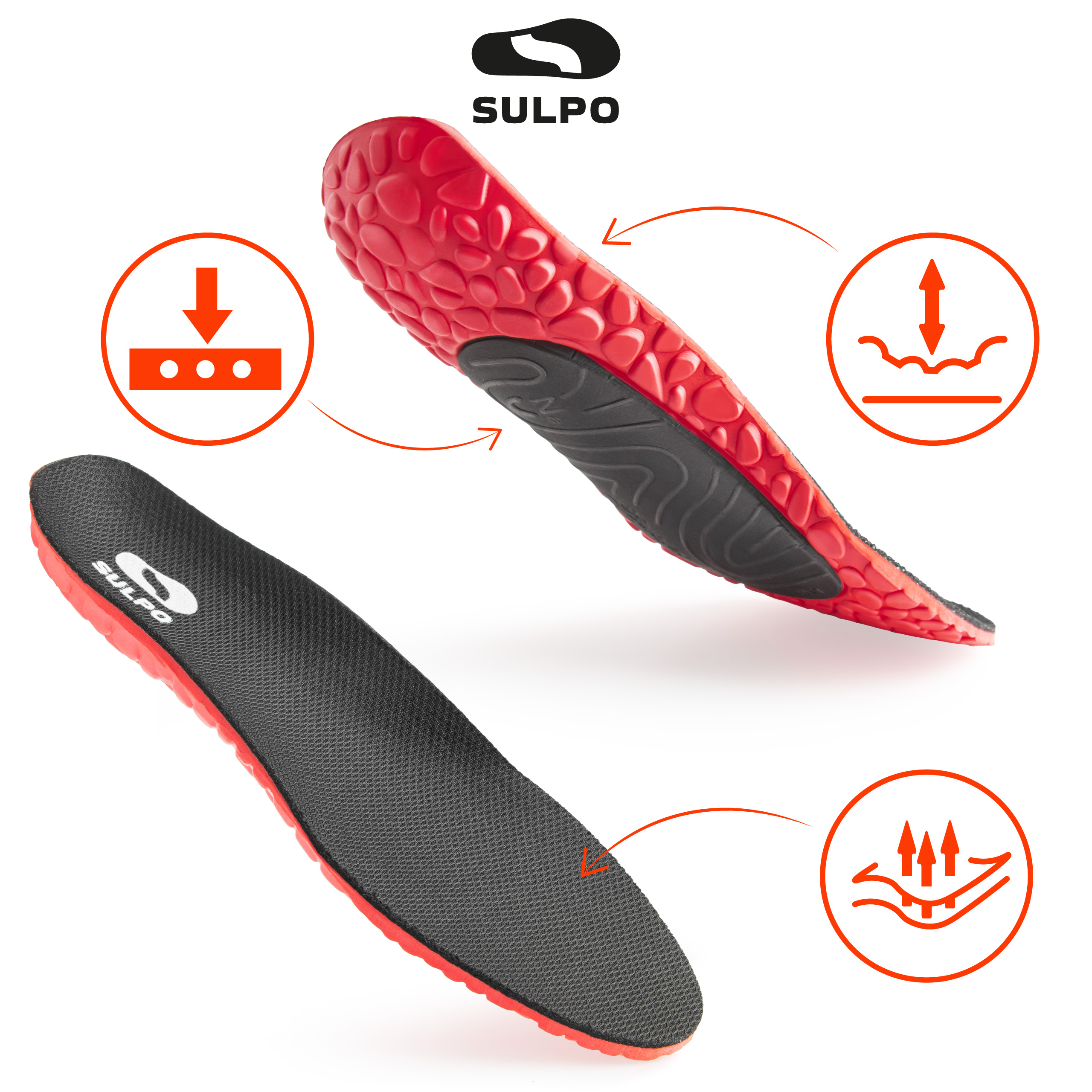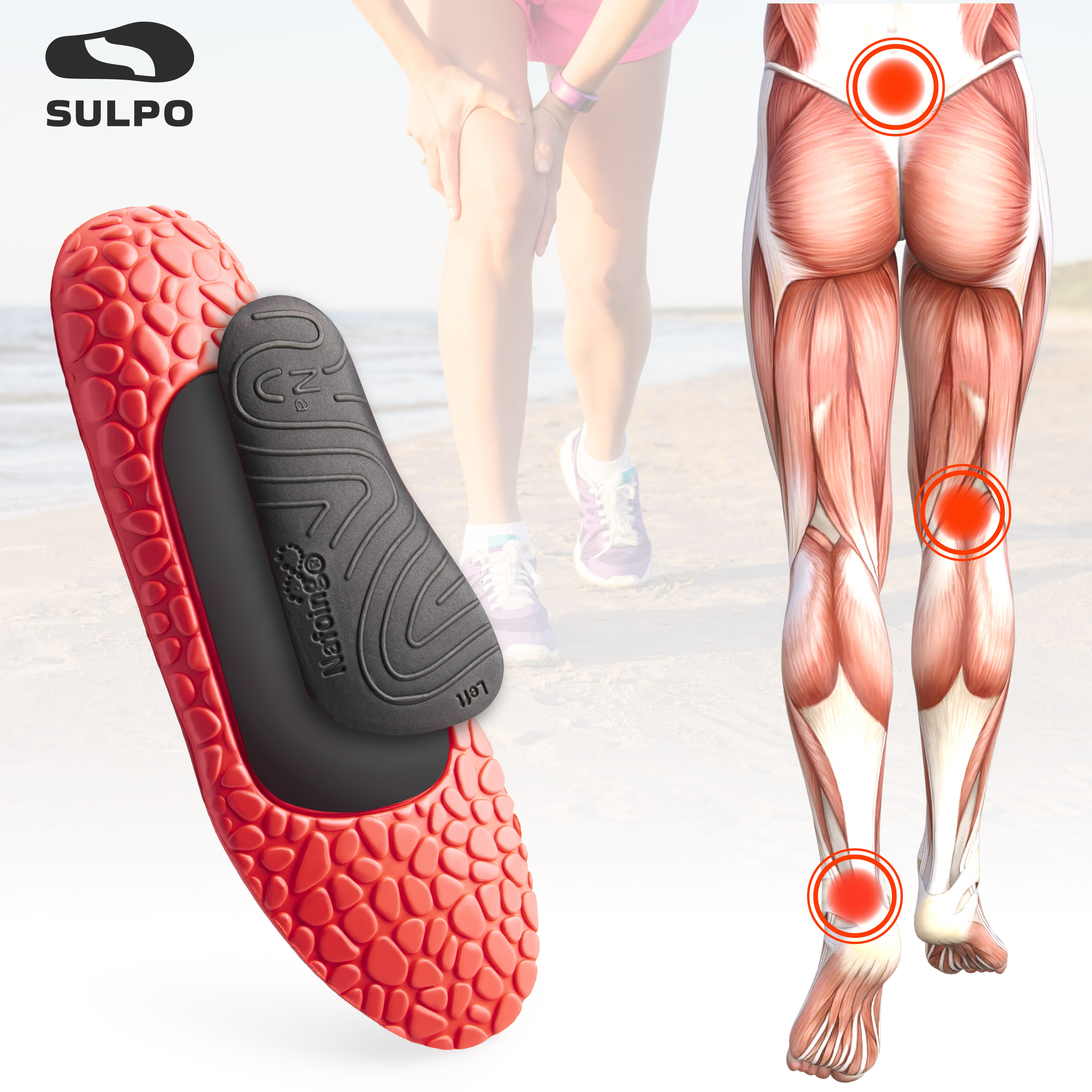 Wkładki Sulpo zostały zaprojektowane z uwzględnieniem biomechaniki chodu, co przekłada się na poprawę rozkładu sił działających na kończyny dolne i kręgosłup. Ich profilowana konstrukcja pomaga utrzymać stopę w naturalnej pozycji, stabilizując ją i zmniejszając ryzyko nadmiernej pronacji lub supinacji.