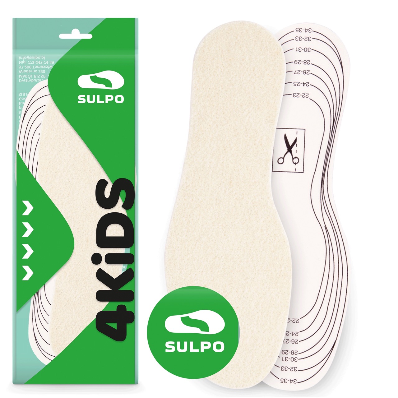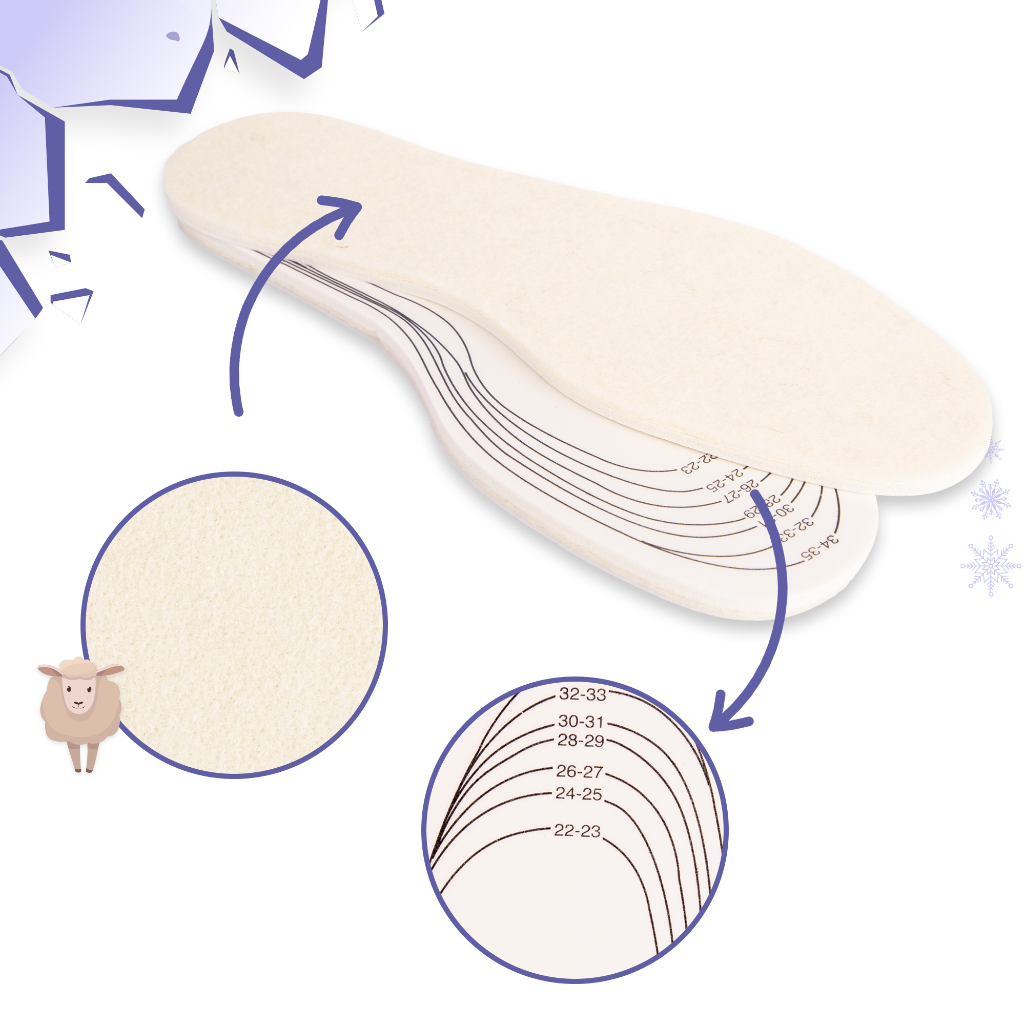 Dziecięce docinane wkładki zimowe z wełny owczej