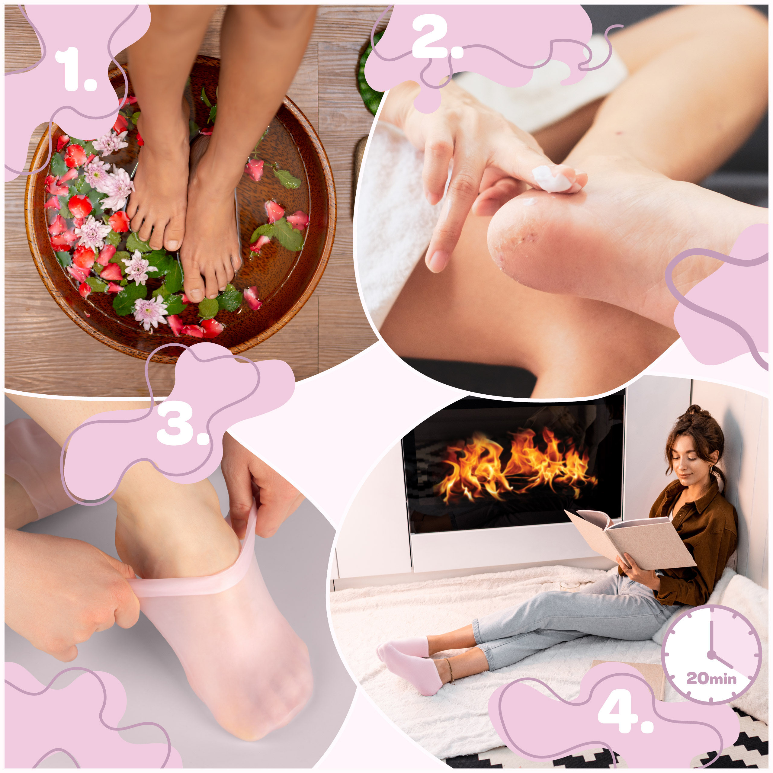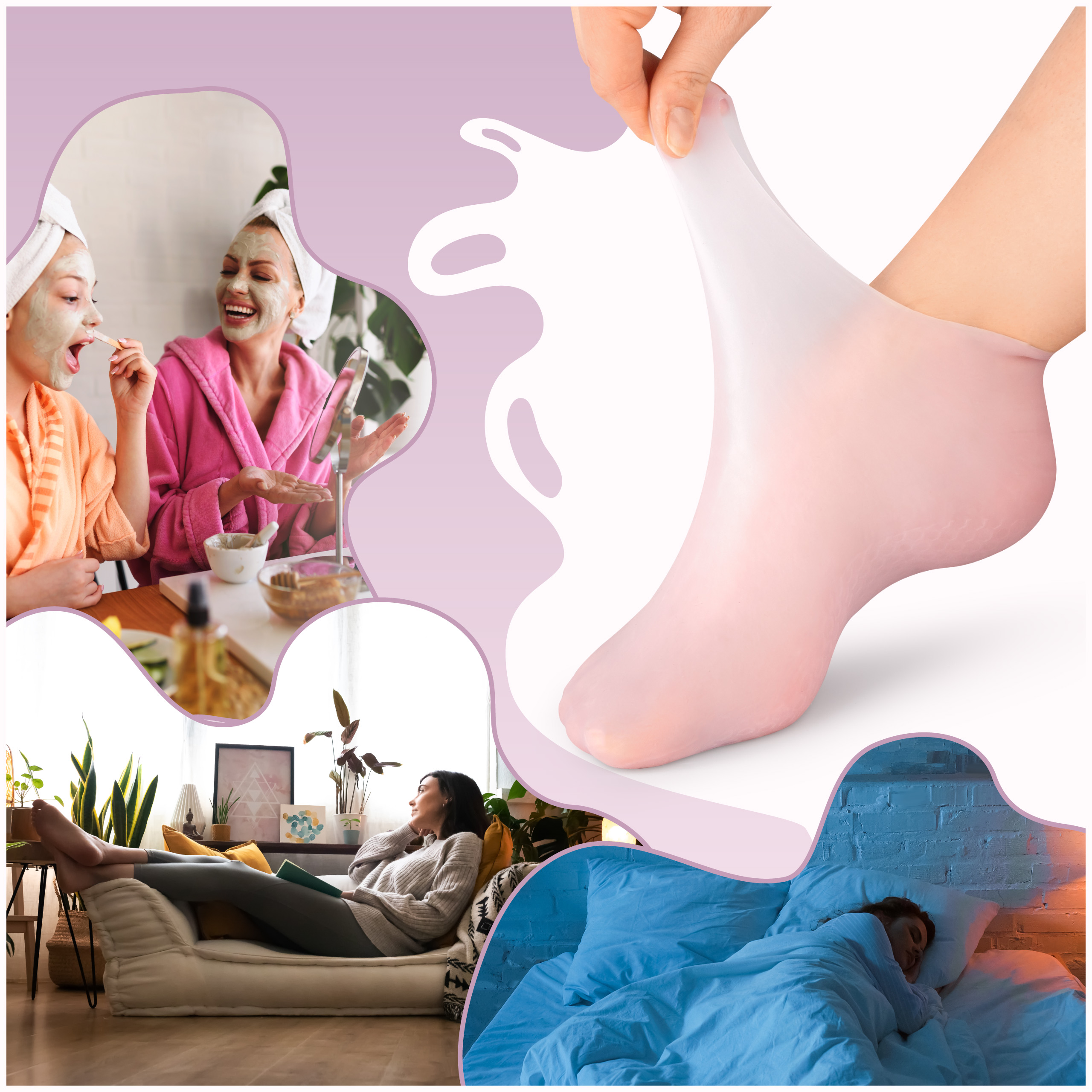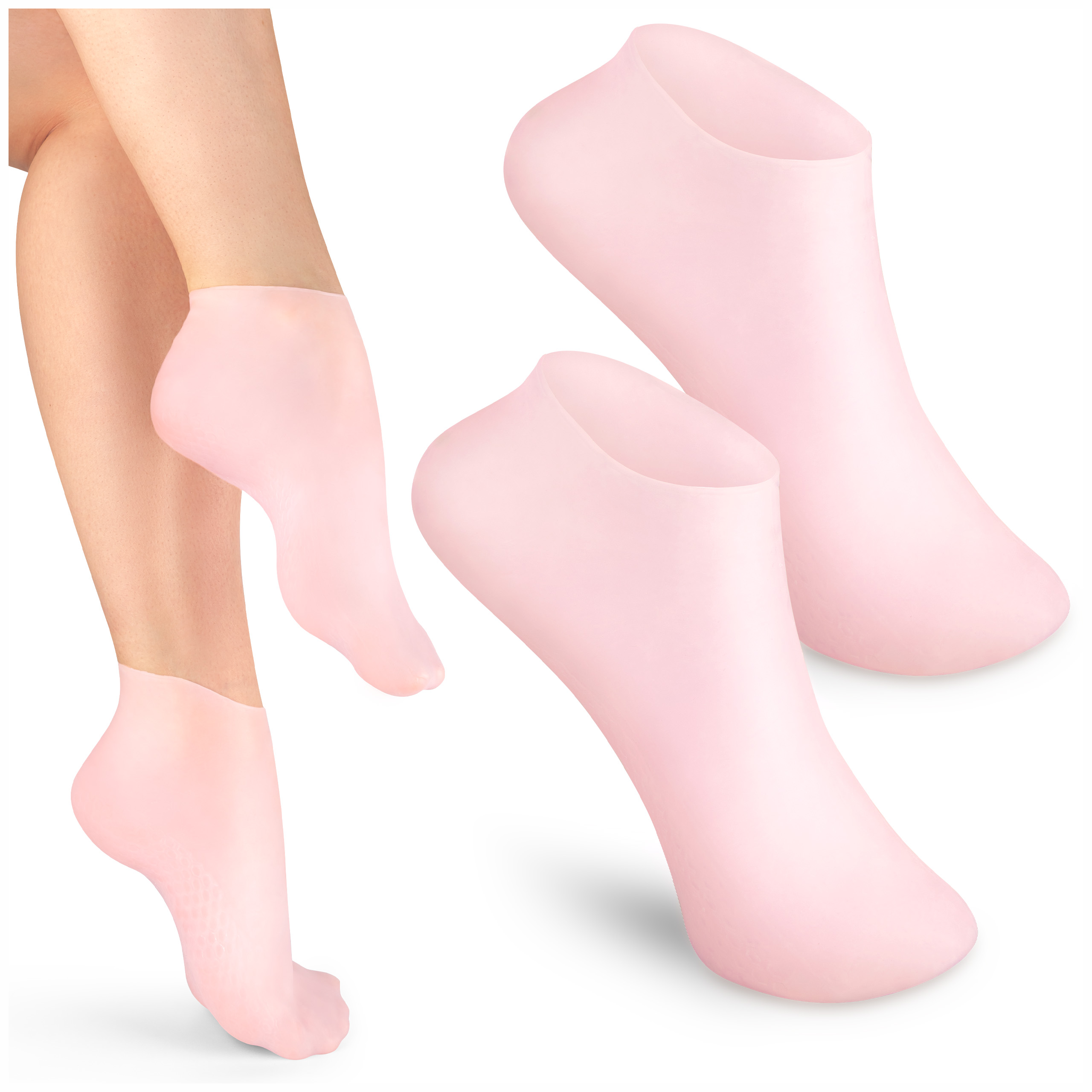 3️⃣ Załóż silikonowe skarpetki i pozostaw je na minimum 20 minut – dla jeszcze lepszego efektu można je nosić przez całą noc.