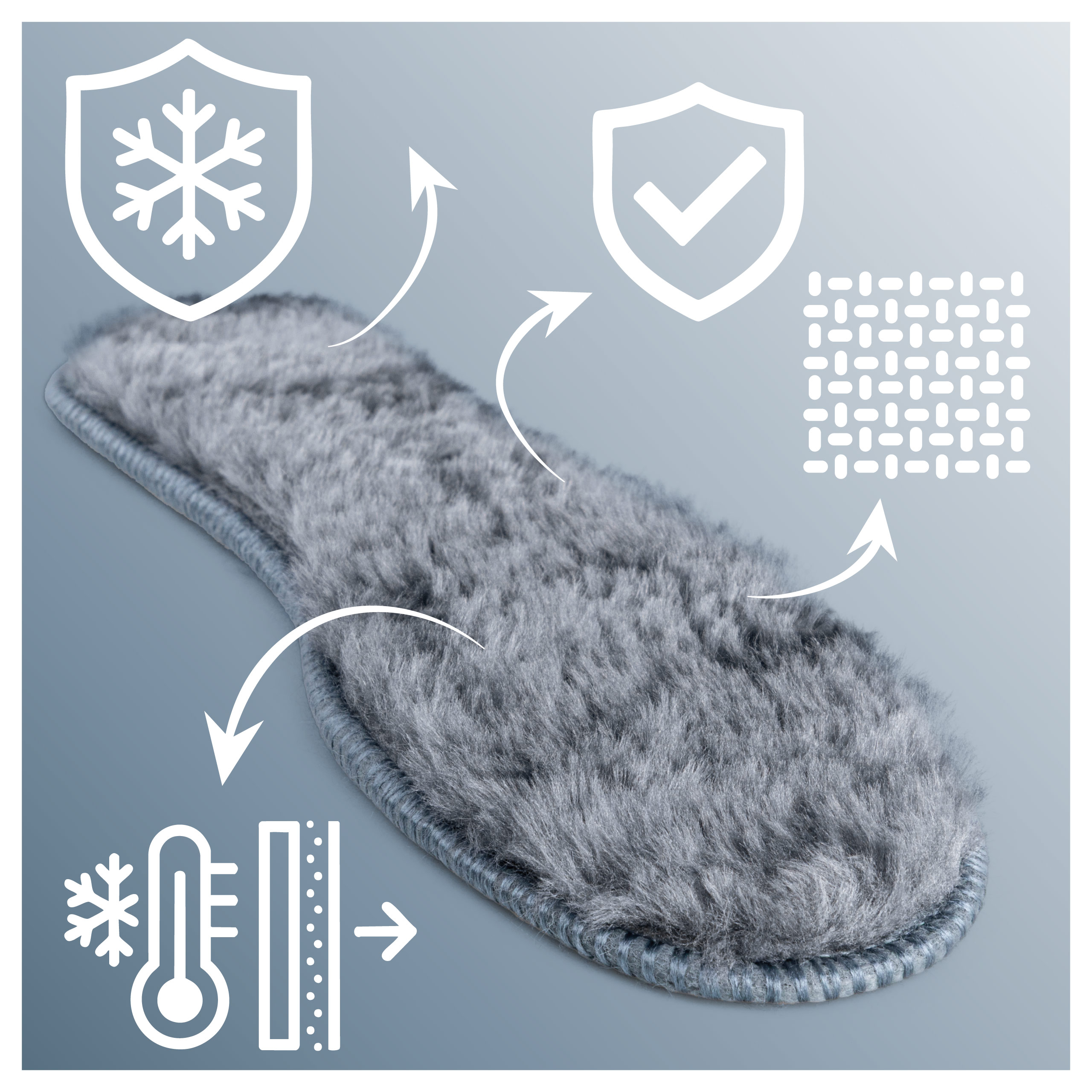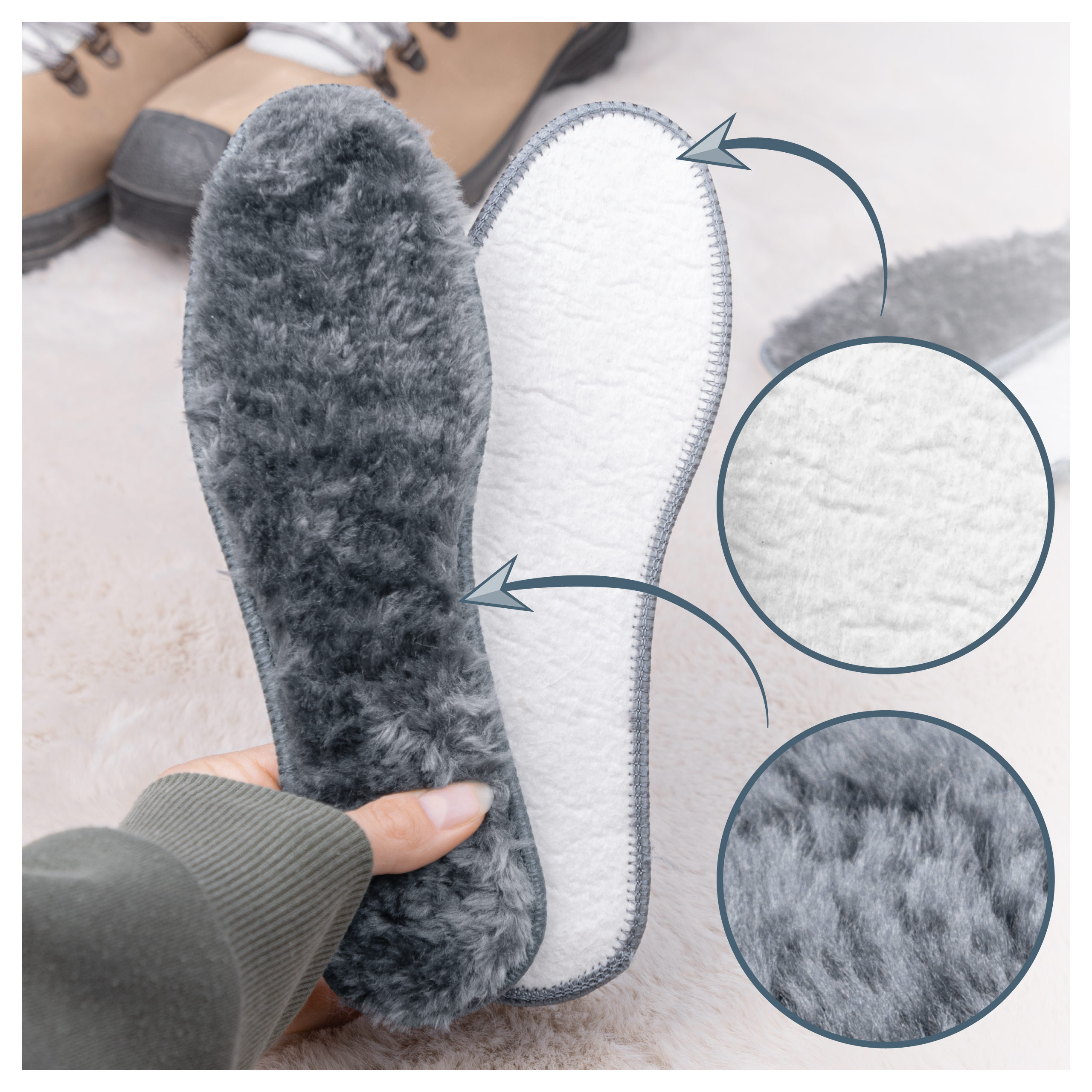 - Ciepłe wkładki zimowe SULPO – miękkie, pluszowe wkładki z piankową izolacją i antypoślizgowym spodem, zapewniające ciepło, wygodę i stabilność w mroźne dni. Idealne do codziennych, zimowych i roboczych butów.