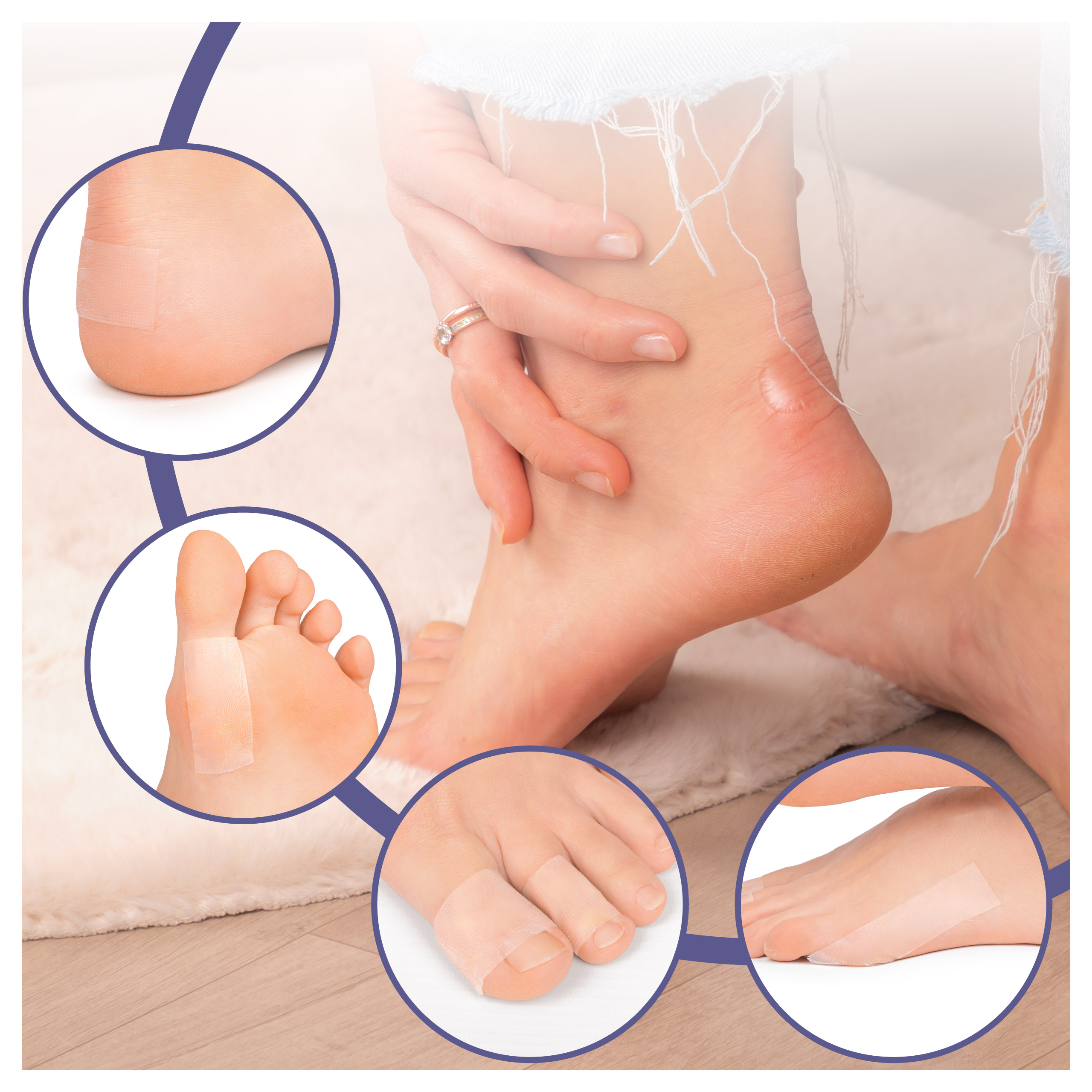 Przezroczysta taśma chroniąca stopy przed otarciami i pęcherzami. Mocny, delikatny dla skóry klej, wodoodporna, hipoalergiczna i łatwa do odrywania bez nożyczek. Idealna na pięty, palce i miejsca narażone na tarcie.