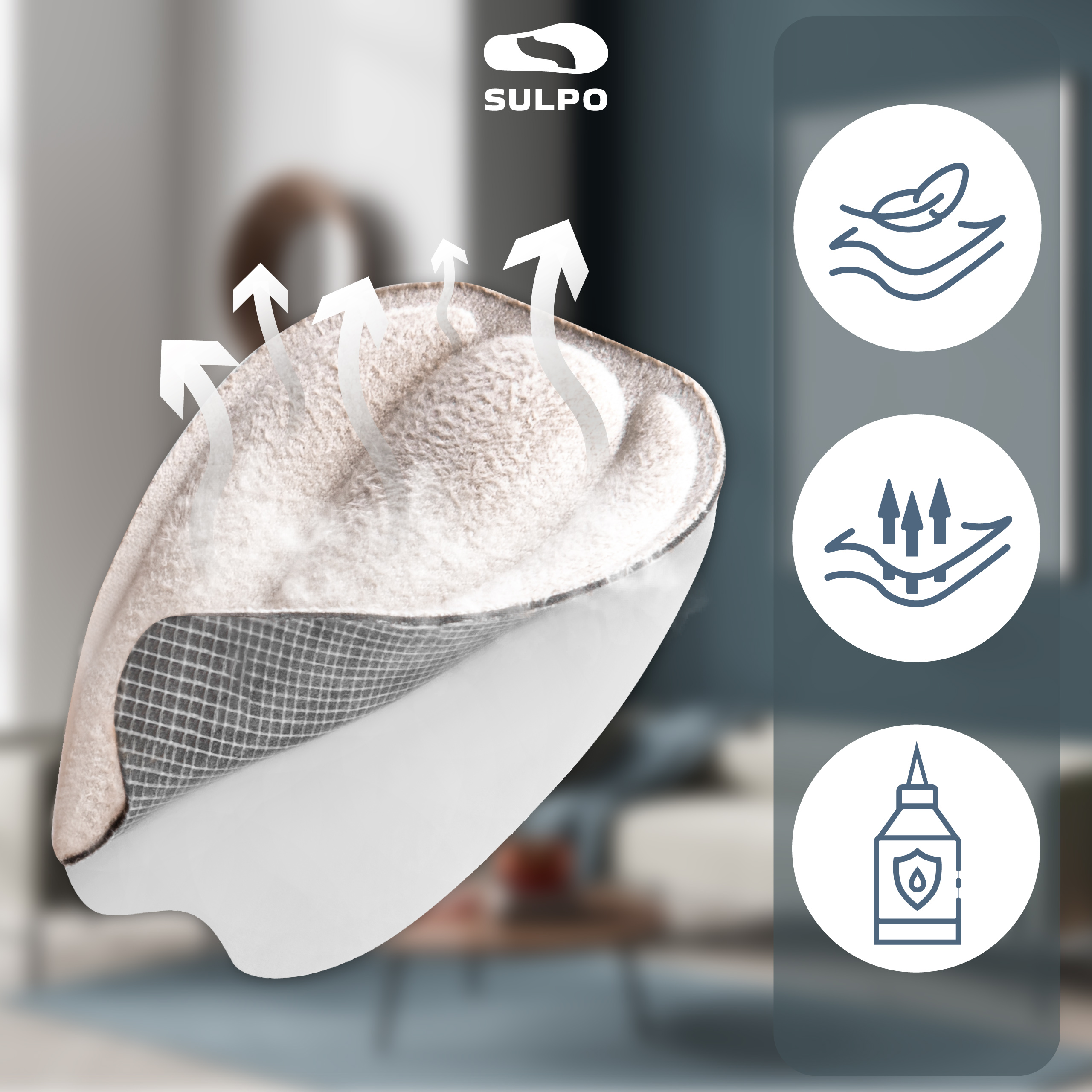 Miękkie, przewiewne i samoprzylepne – wkładki SULPO zapewniają wygodę przez cały dzień. Dzięki oddychającej strukturze materiału stopa pozostaje świeża, a mocne mocowanie zapobiega przesuwaniu się wkładki w bucie. Idealne do codziennego obuwia.