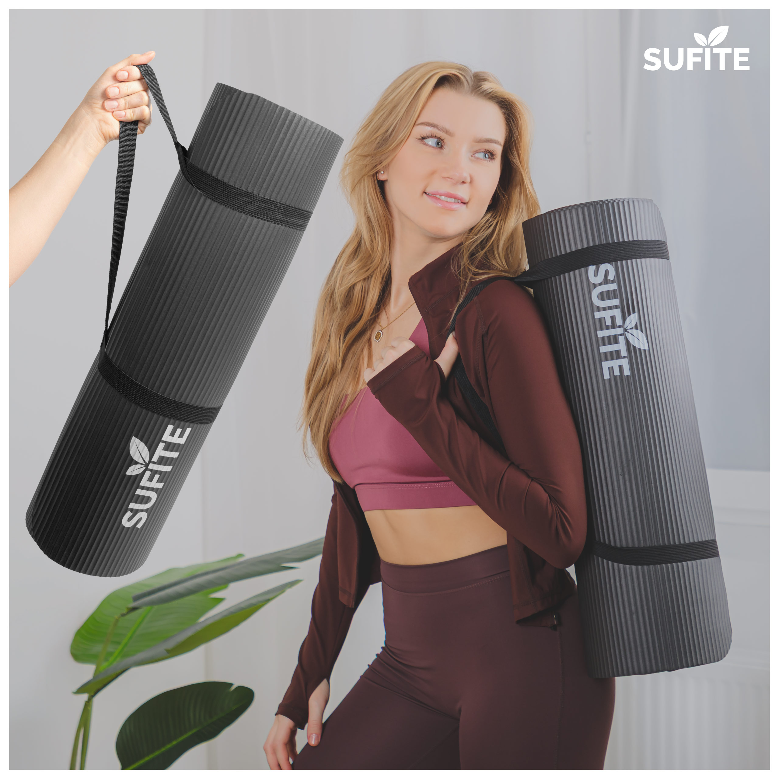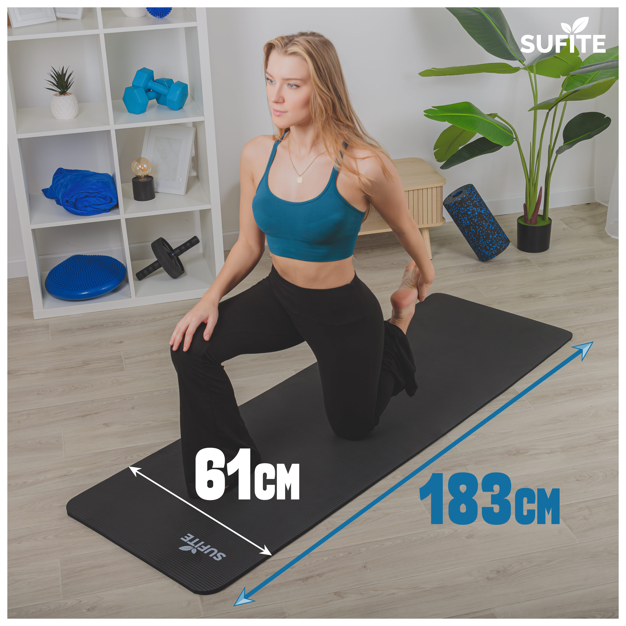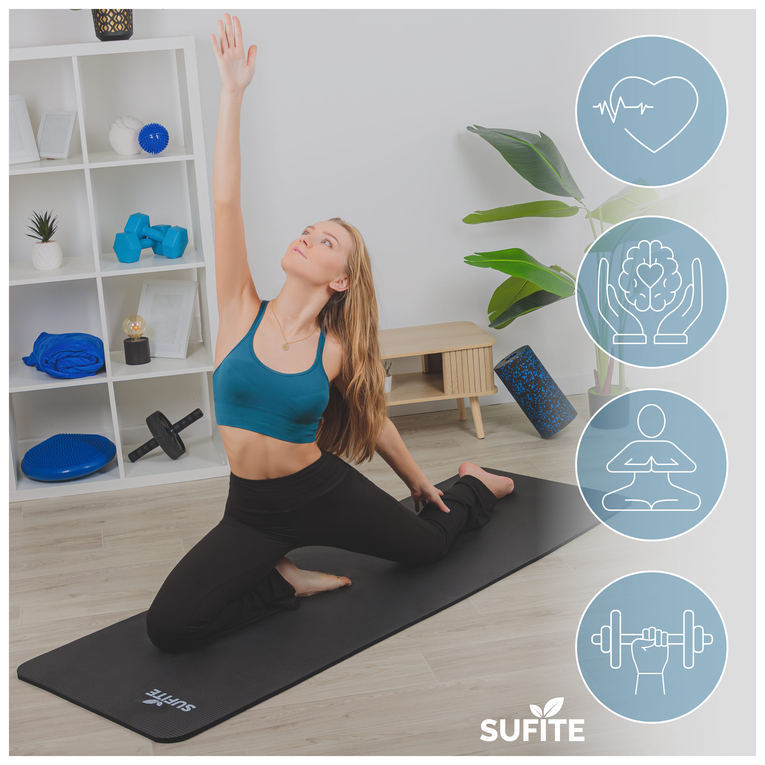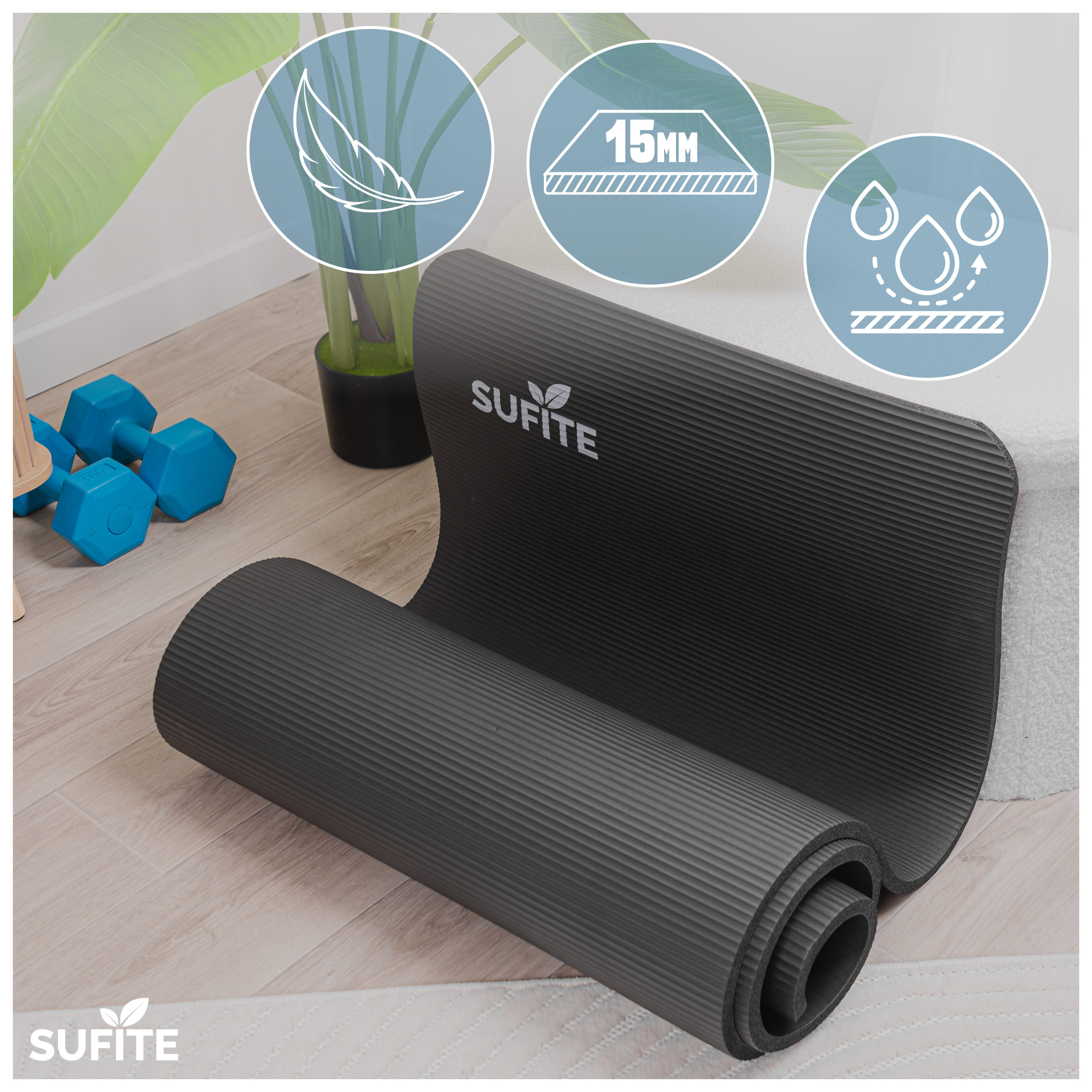 - Gruba mata do ćwiczeń SUFITE z pianki NBR 1,5 cm, przeznaczona do jogi, fitness i treningów w domu lub na siłowni.