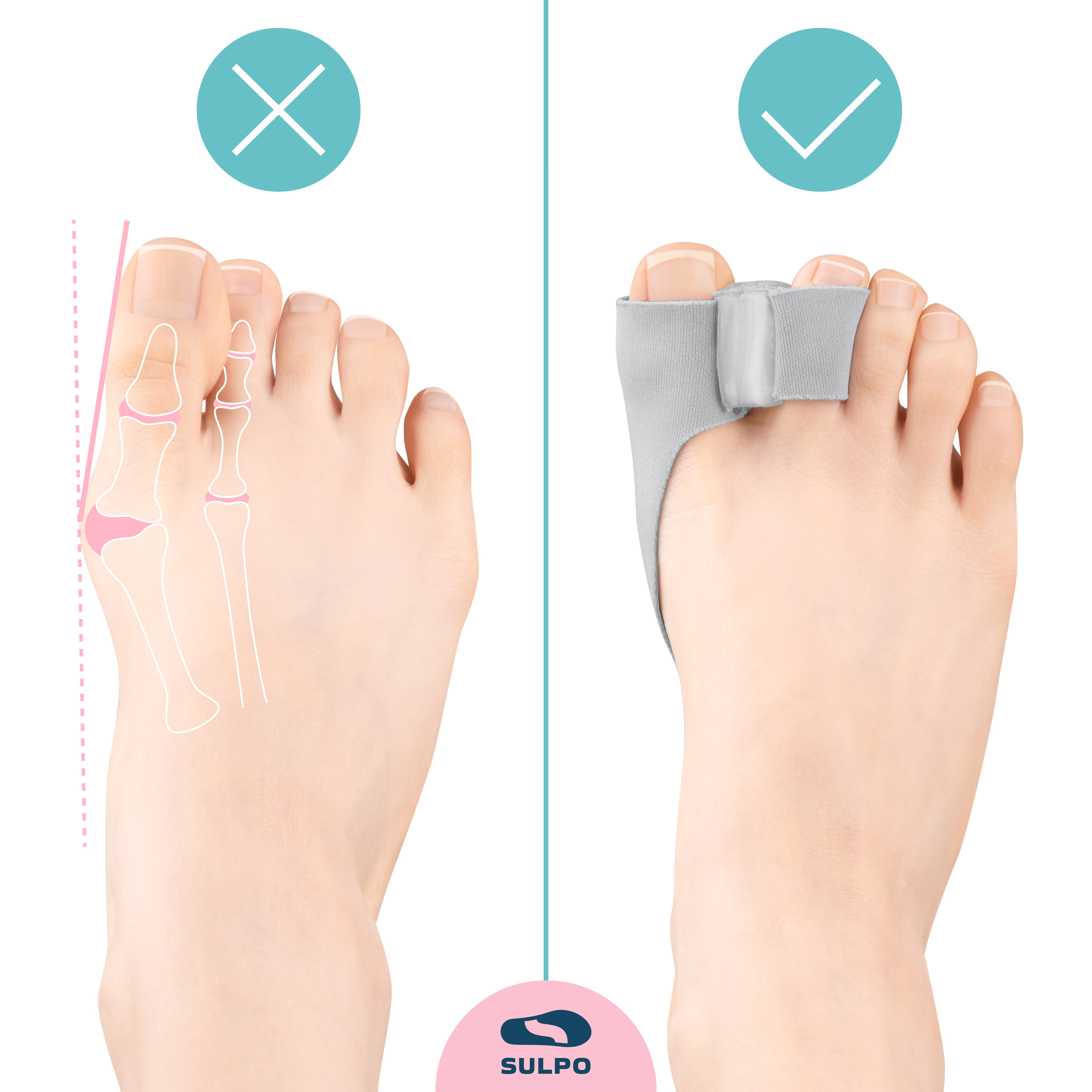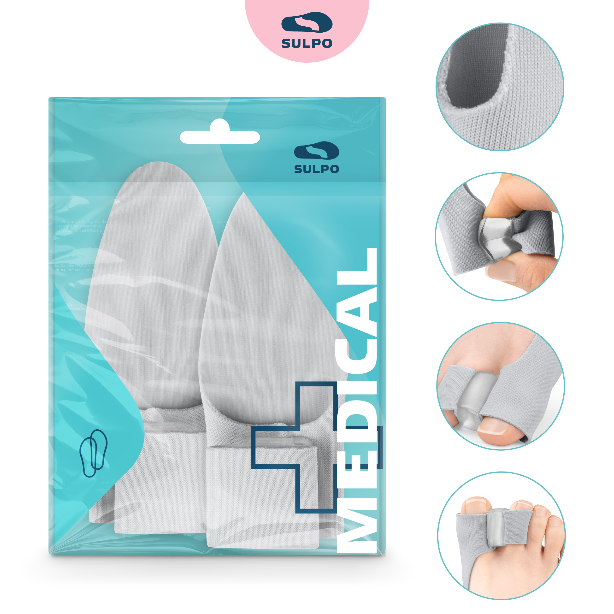 - Miękki korektor haluksów SULPO z separatorem palców pomaga ustabilizować paluch koślawy, zmniejszyć ból i poprawić komfort chodzenia.