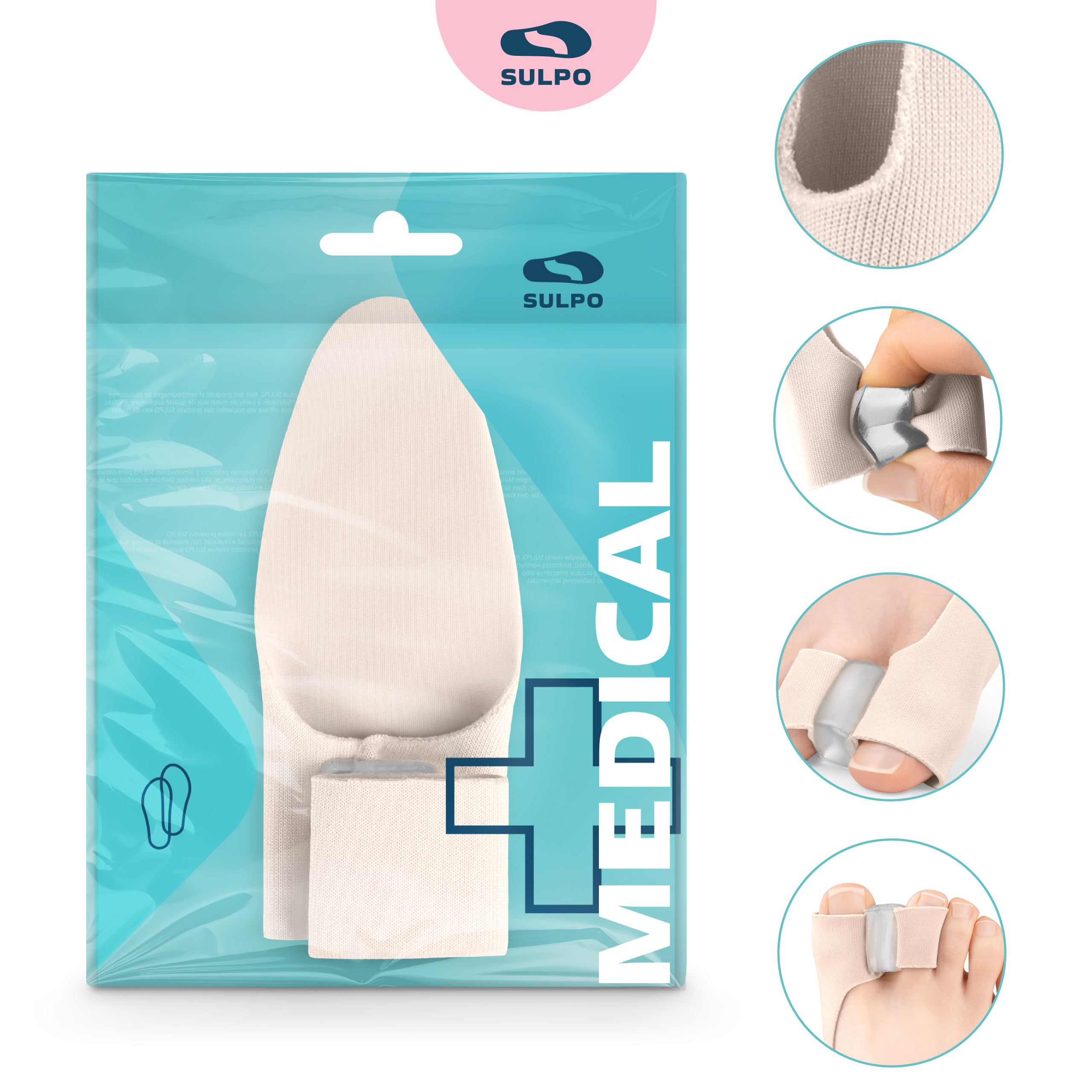 - Miękki korektor haluksów SULPO z separatorem palców pomaga ustabilizować paluch koślawy, zmniejszyć ból i poprawić komfort chodzenia.